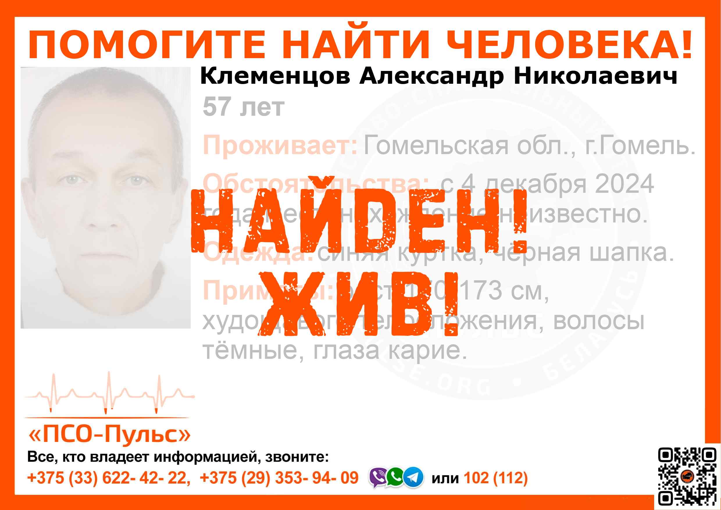 Всех, кто владеет информацией, просим сообщить: ПСО "ПСО-Пульс" +375(33)622-4222 |