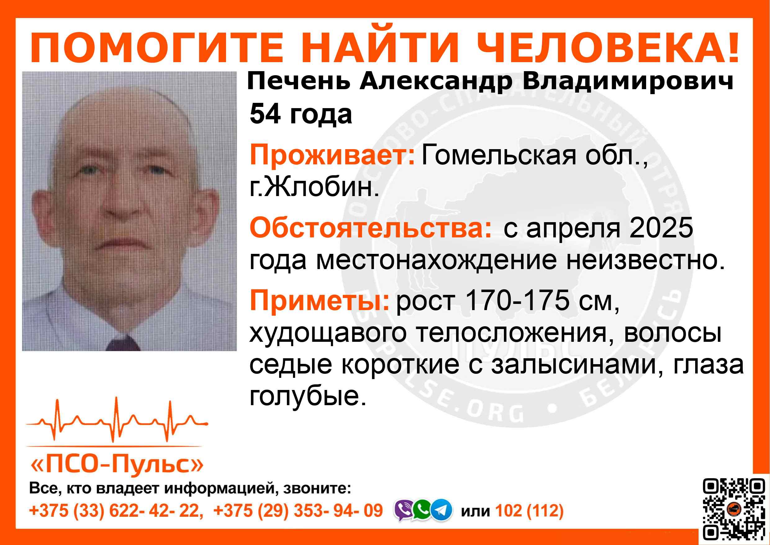 Всех, кто владеет информацией, просим сообщить: ПСО "ПСО-Пульс" +375(33)622-4222 |