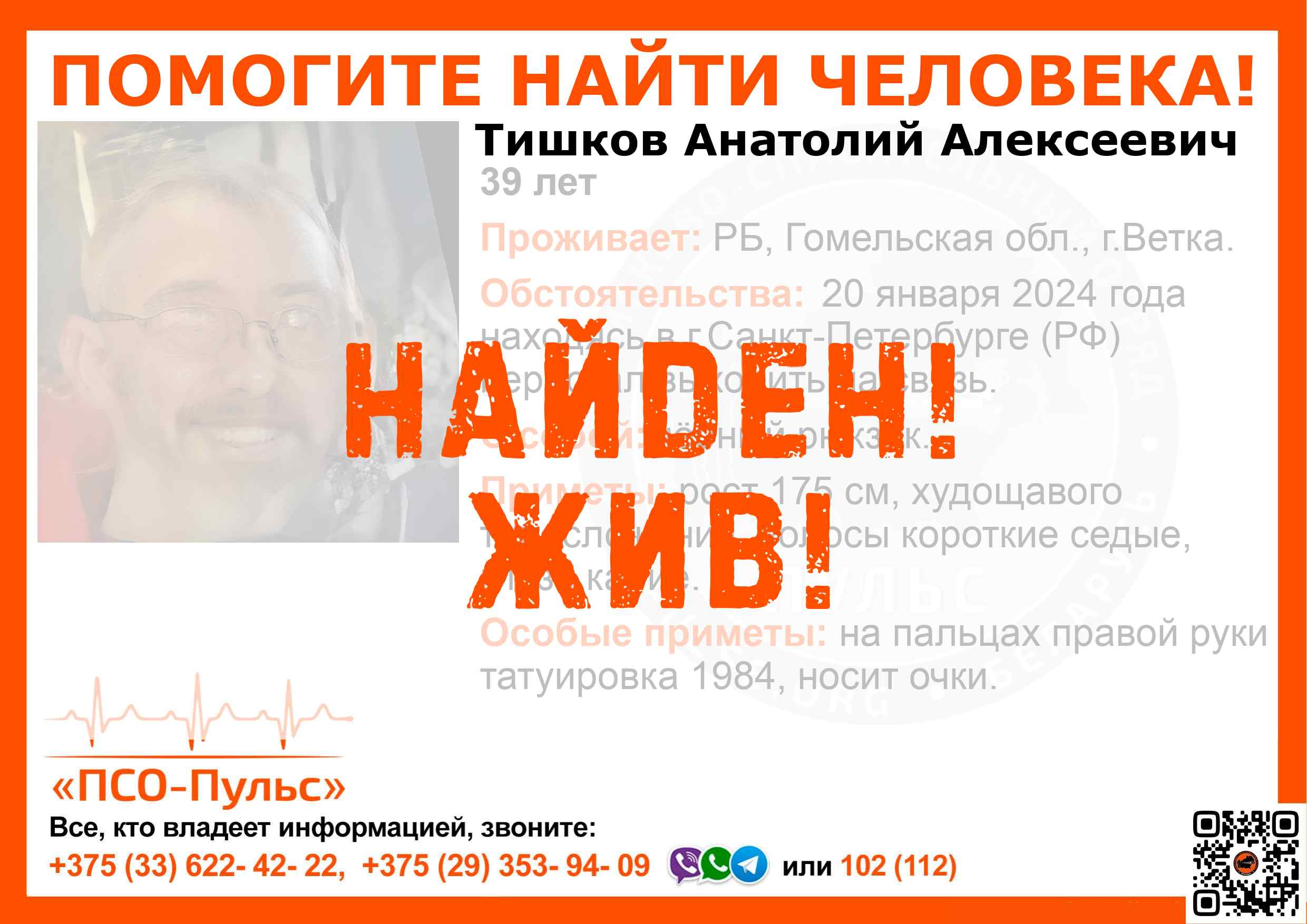 Всех, кто владеет информацией, просим сообщить: ПСО "ПСО-Пульс" +375(33)622-4222 |