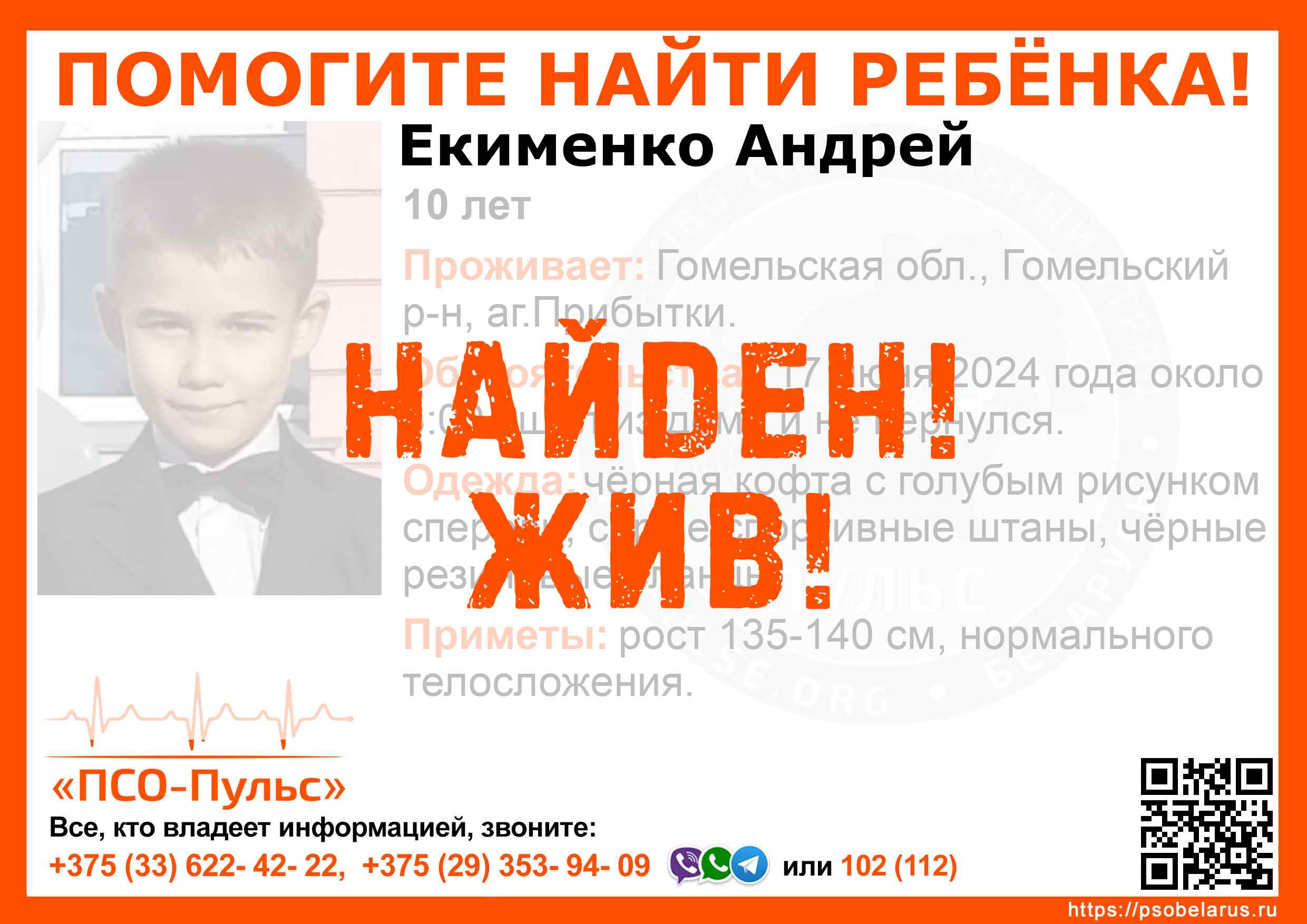 Всех, кто владеет информацией, просим сообщить: ПСО "ПСО-Пульс" +375(33)622-4222 |
