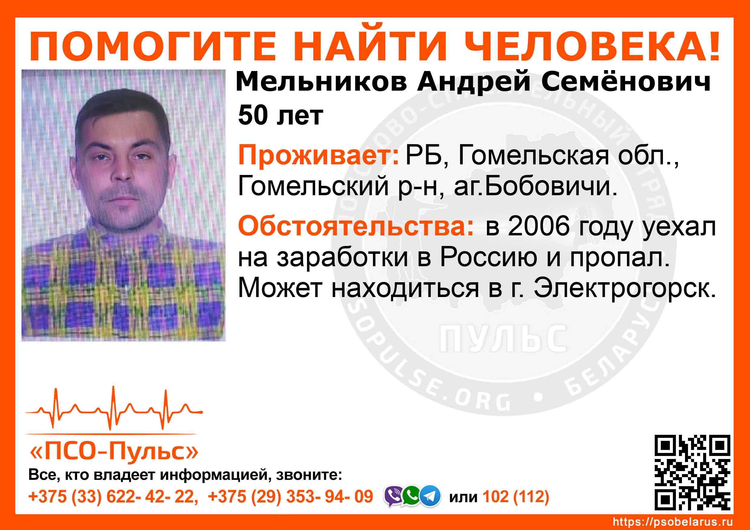 Всех, кто владеет информацией, просим сообщить: ПСО "ПСО-Пульс" +375(33)622-4222 |