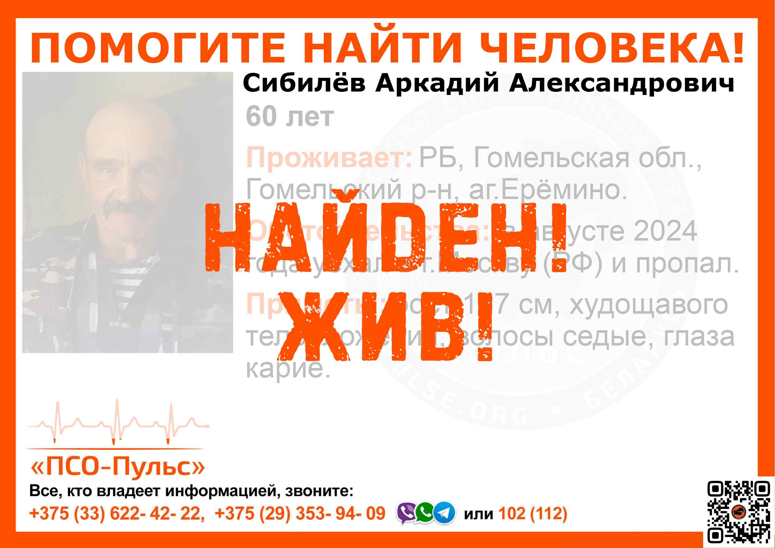 Всех, кто владеет информацией, просим сообщить: ПСО "ПСО-Пульс" +375(33)622-4222 |