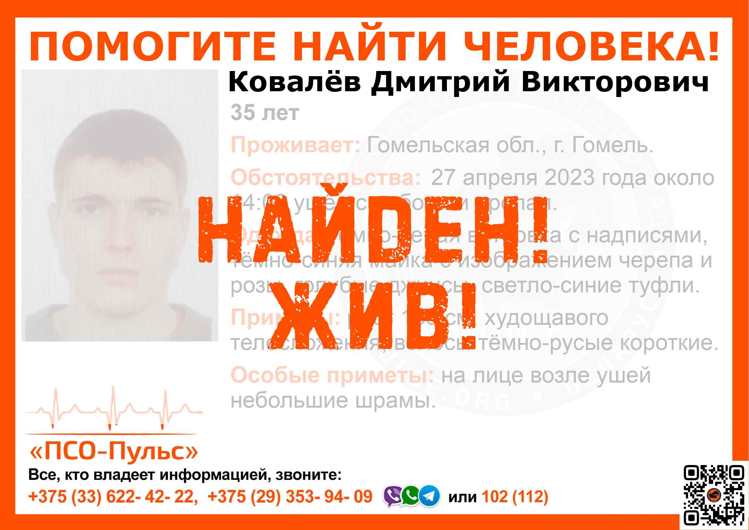 Всех, кто владеет информацией, просим сообщить: ПСО "ПСО-Пульс" +375(33)622-4222 |