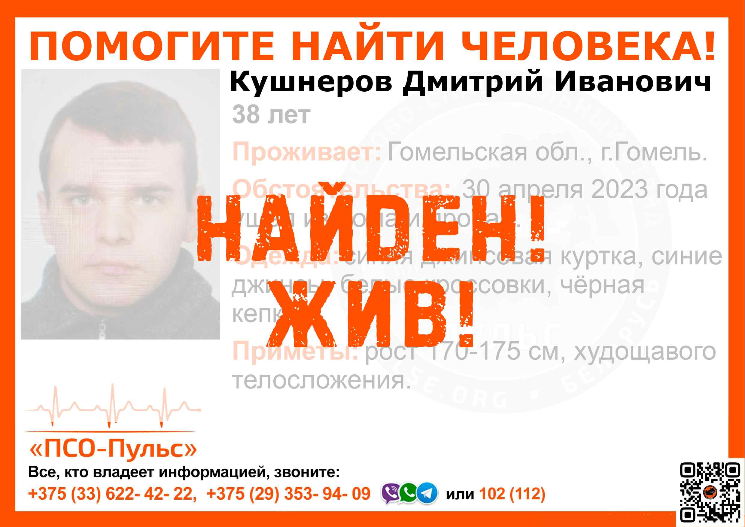 Всех, кто владеет информацией, просим сообщить: ПСО "ПСО-Пульс" +375(33)622-4222 |