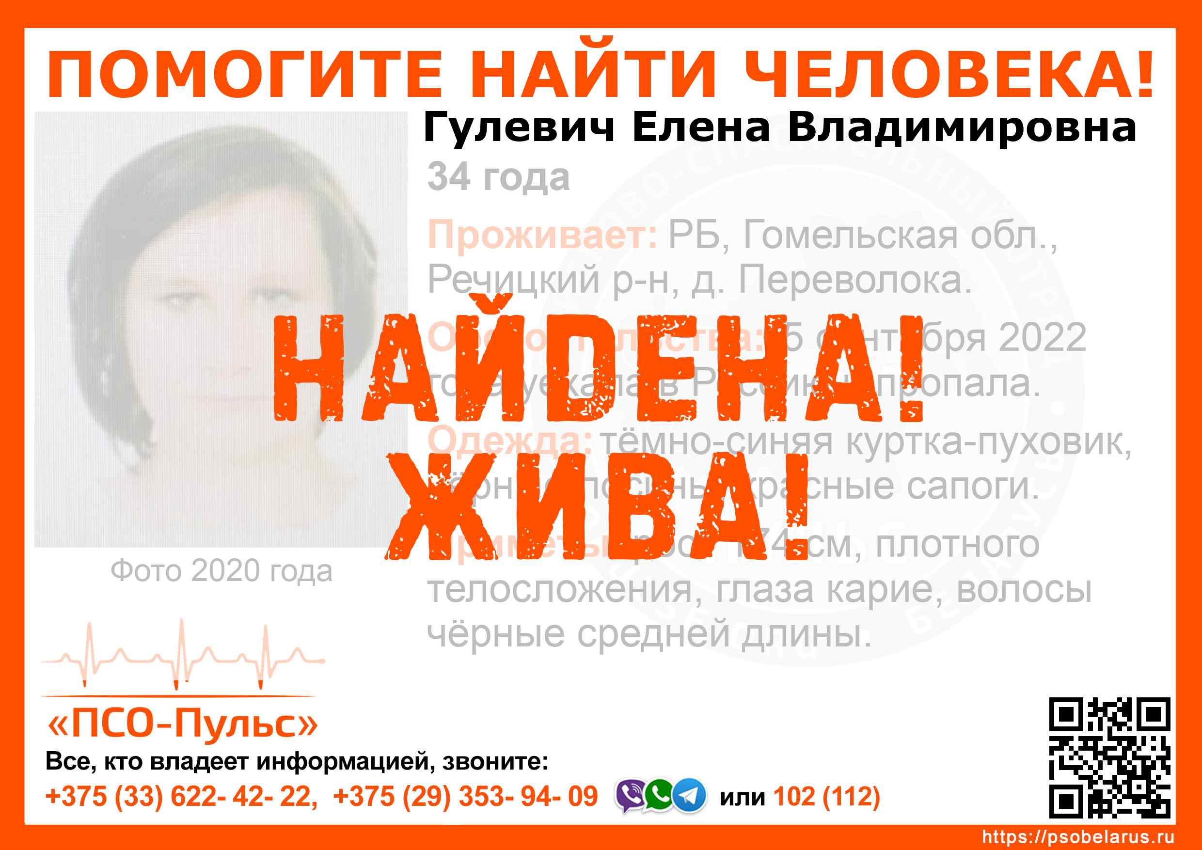 Всех, кто владеет информацией, просим сообщить: ПСО "ПСО-Пульс" +375(33)622-4222 |