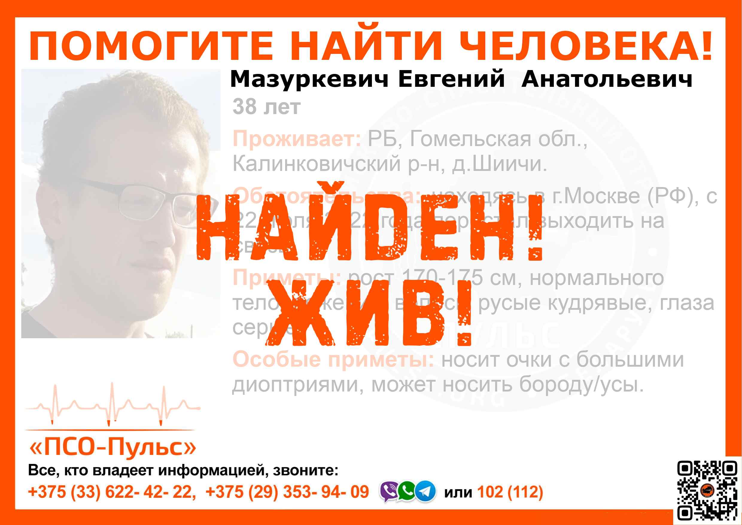 Всех, кто владеет информацией, просим сообщить: ПСО "ПСО-Пульс" +375(33)622-4222 |