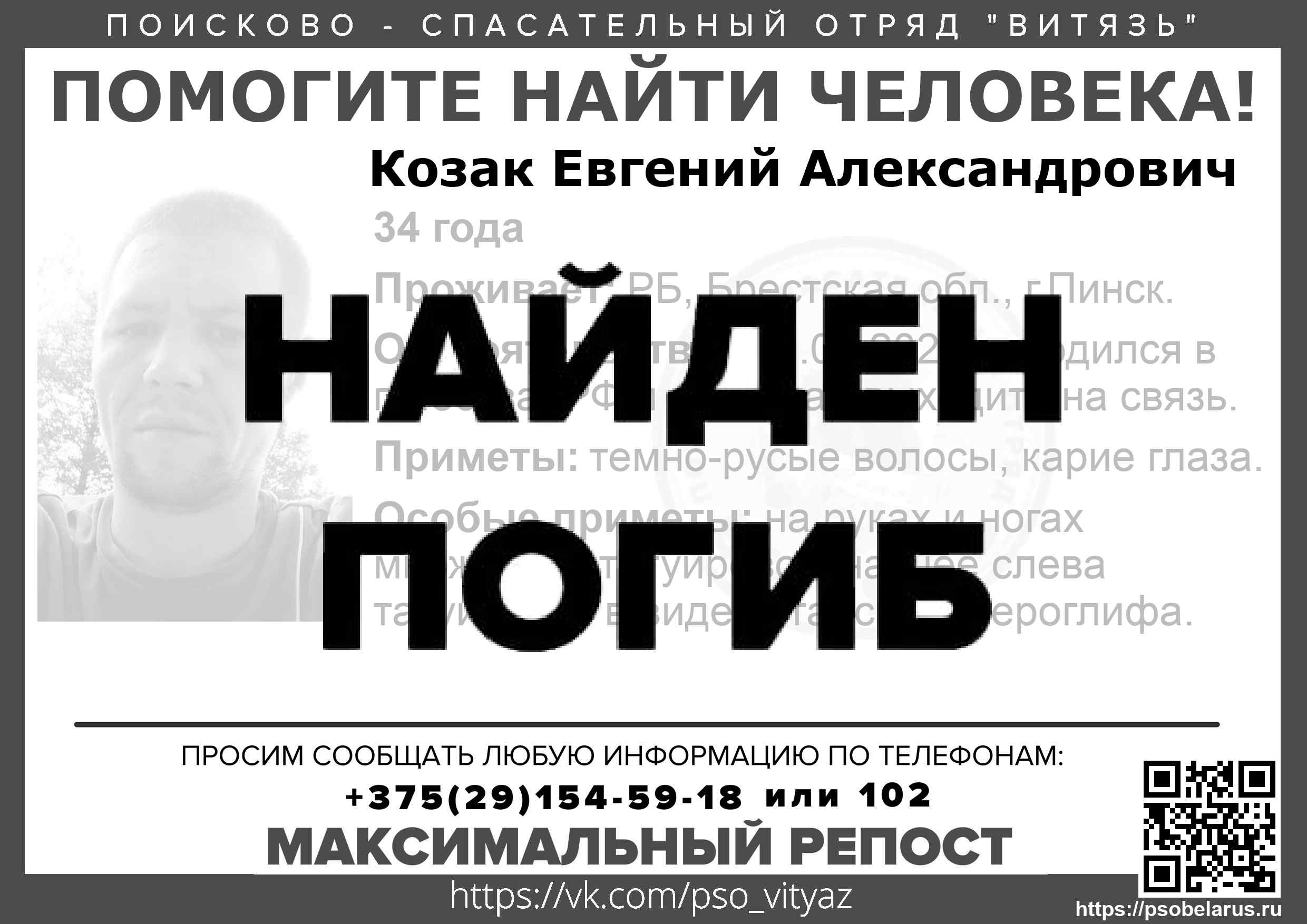 Всех, кто владеет информацией, просим сообщить: ПСО "ВИТЯЗЬ" +375(29)154-59-18 |