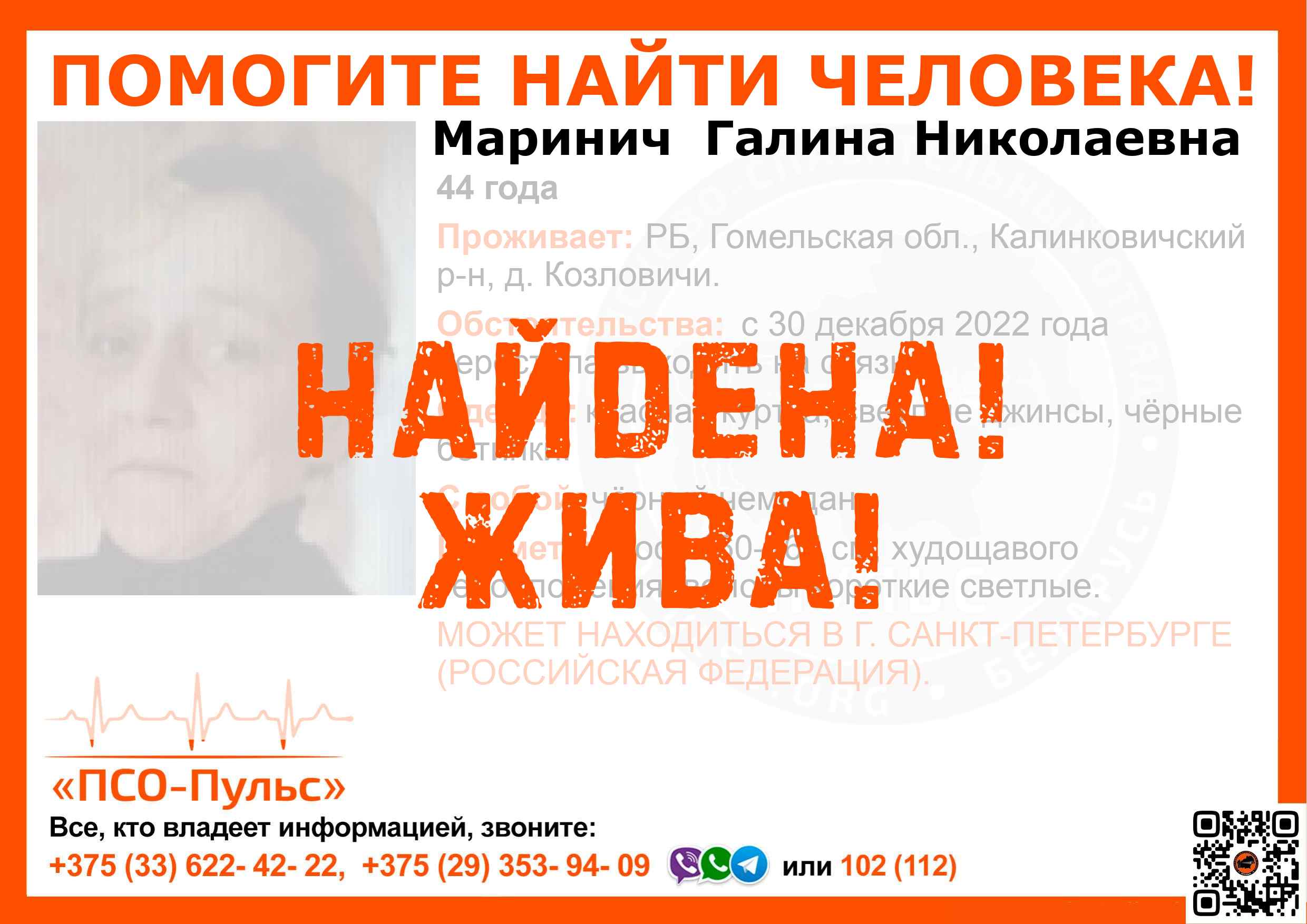 Скачать ориентировкуДля оперативного получения информации о пропавших людях и сборах на поиски можно подписаться на бота оповещения: Телеграм