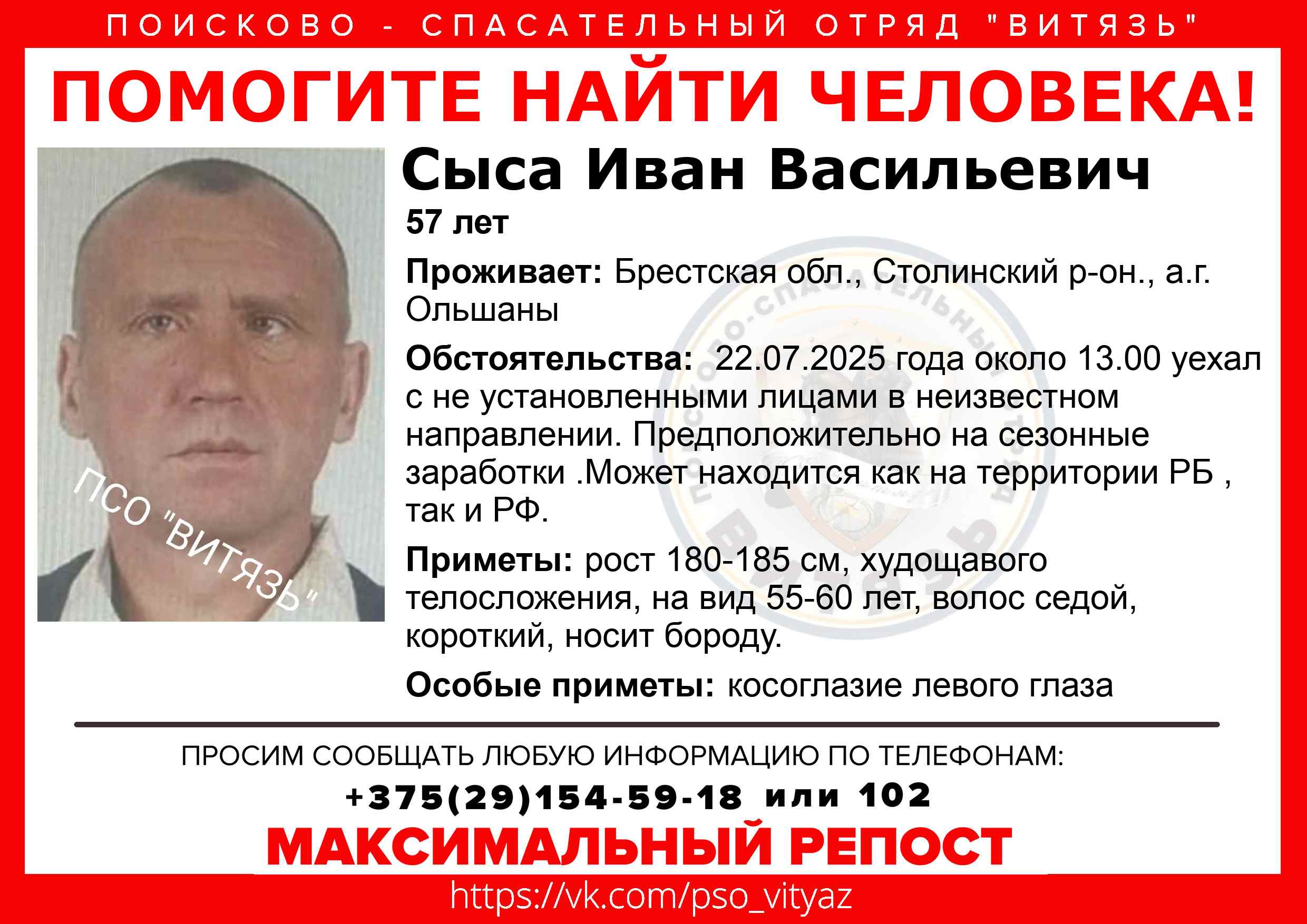 Всех, кто владеет информацией, просим сообщить: ПСО "ВИТЯЗЬ" +375(29)154-59-18 |