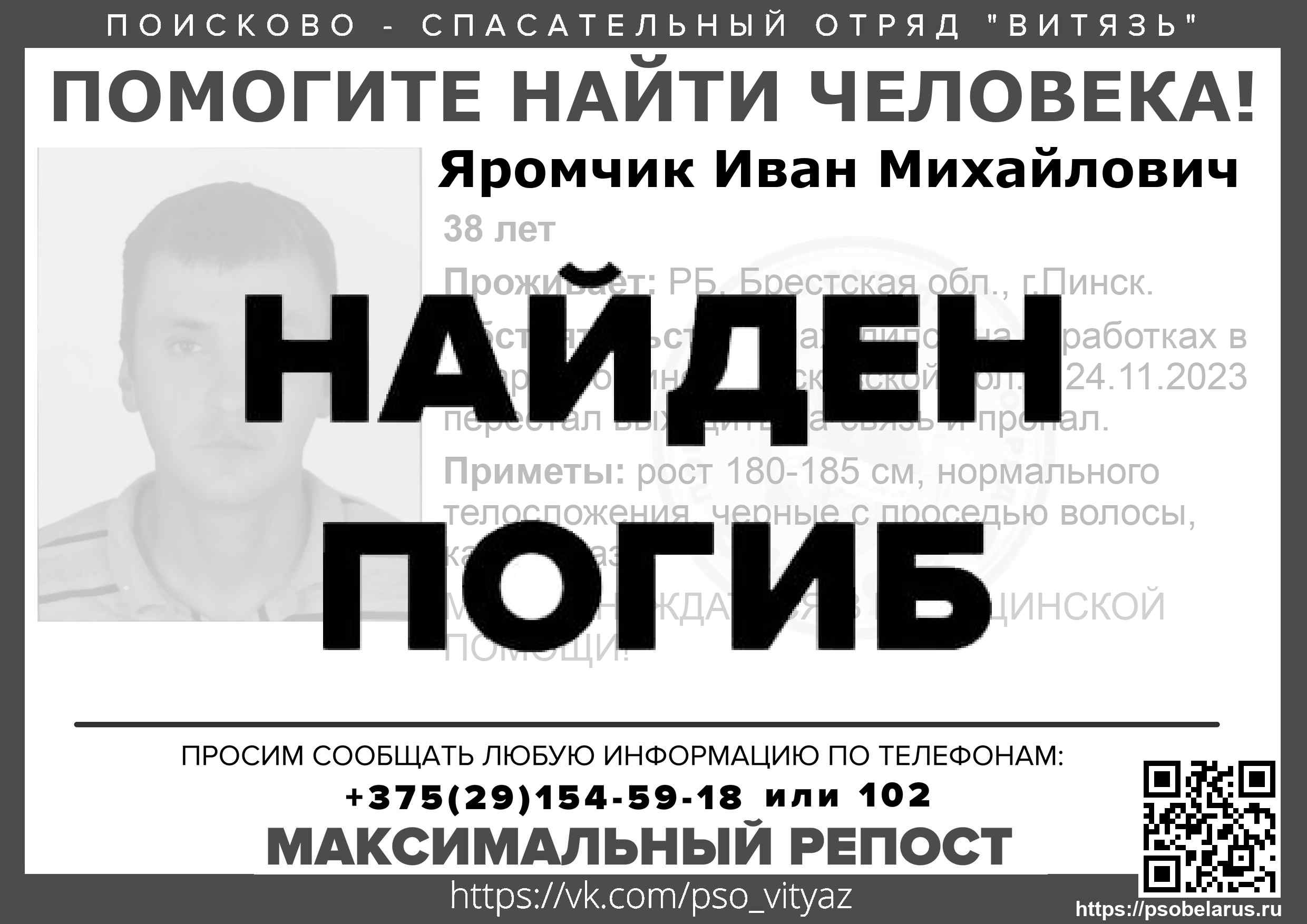 Всех, кто владеет информацией, просим сообщить: ПСО "ВИТЯЗЬ" +375(29)154-59-18 |