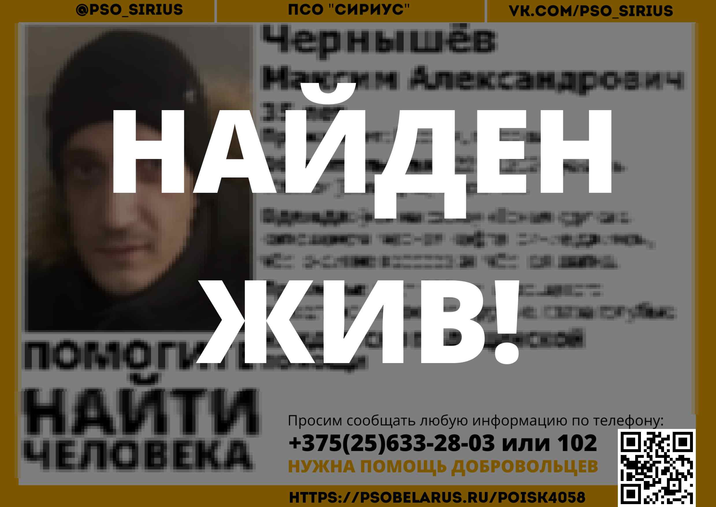 Всех, кто владеет информацией, просим сообщить: ПСО "Сириус" +375(25)633-28-03 |