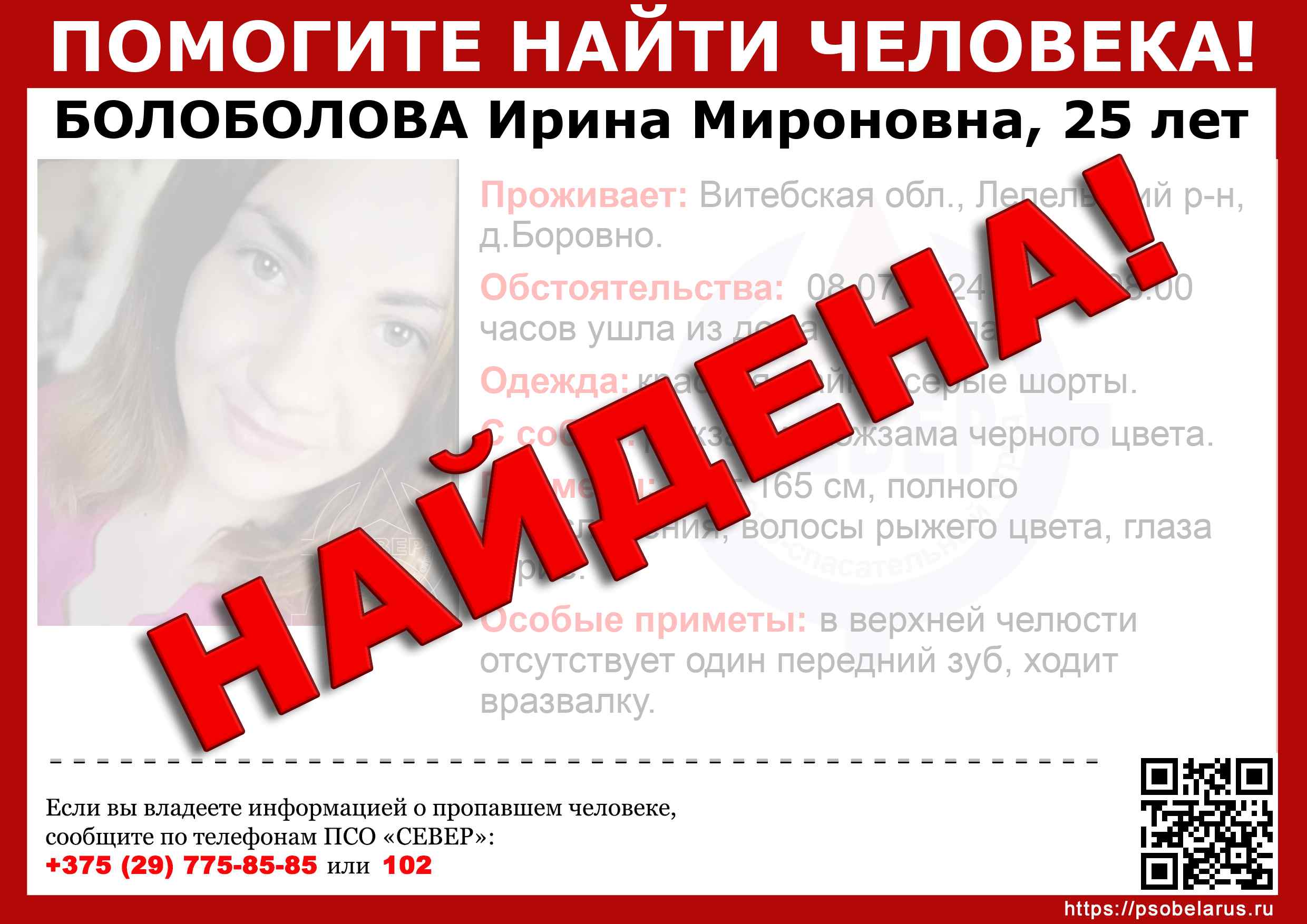 Всех, кто владеет информацией, просим сообщить: ПСО "СЕВЕР" +375(29)775-8585 |