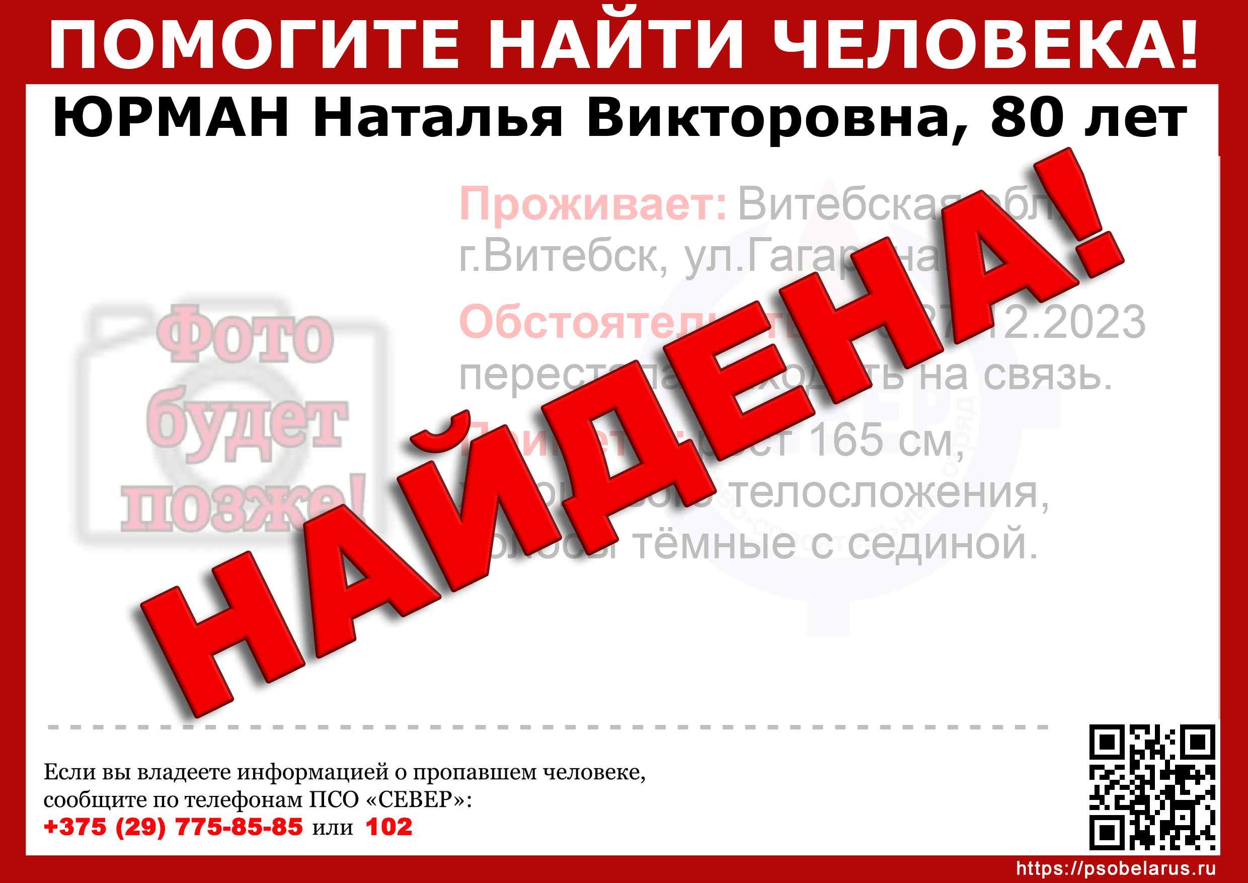 Скачать ориентировкуДля оперативного получения информации о пропавших людях и сборах на поиски можно подписаться на бота оповещения: Телеграм