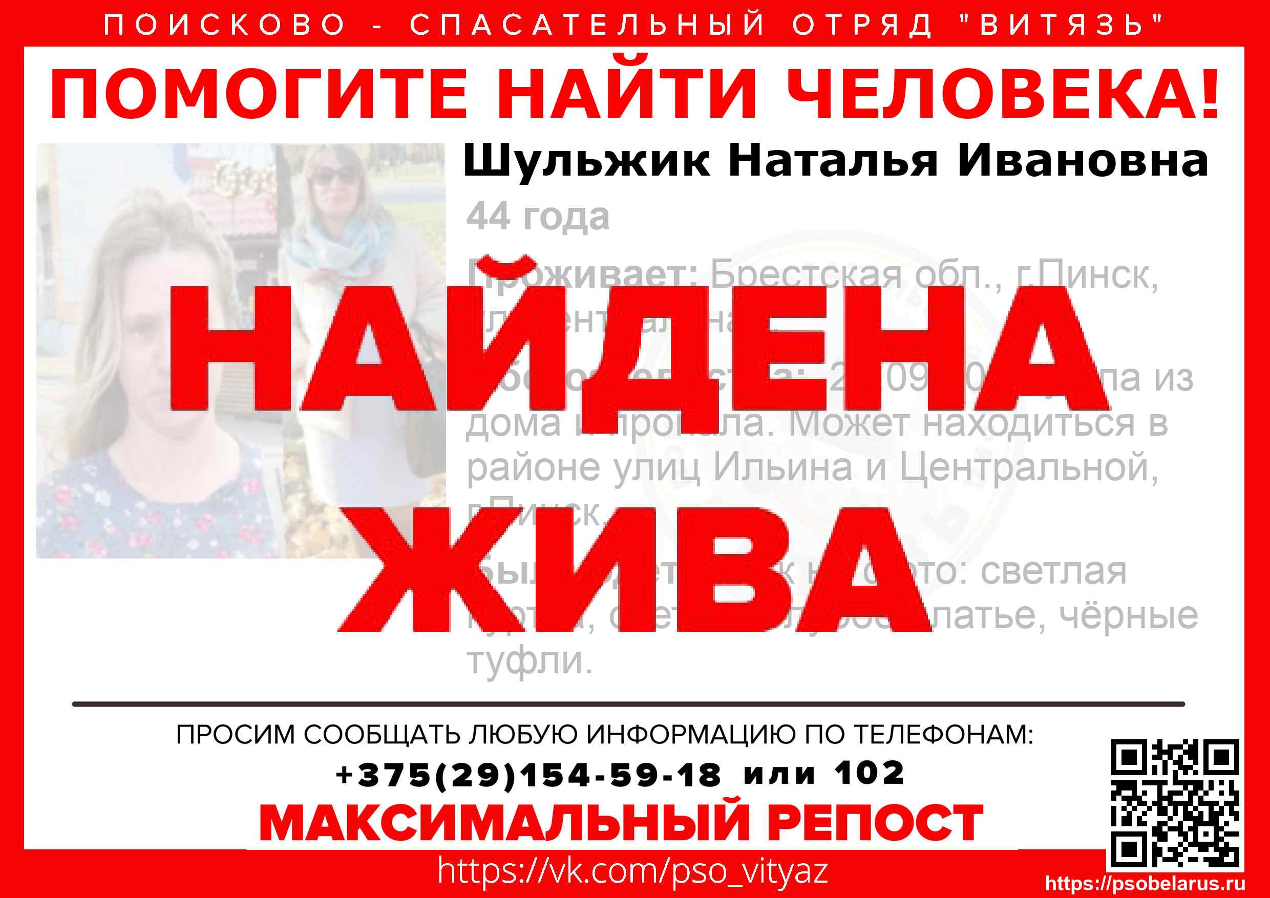 Всех, кто владеет информацией, просим сообщить: ПСО "ВИТЯЗЬ" +375(29)154-59-18 |