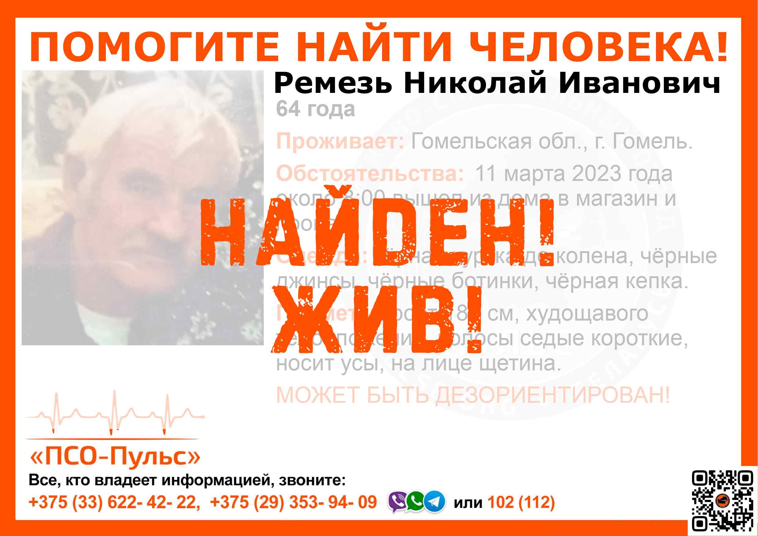 Всех, кто владеет информацией, просим сообщить: ПСО "ПСО-Пульс" +375(33)622-4222 |