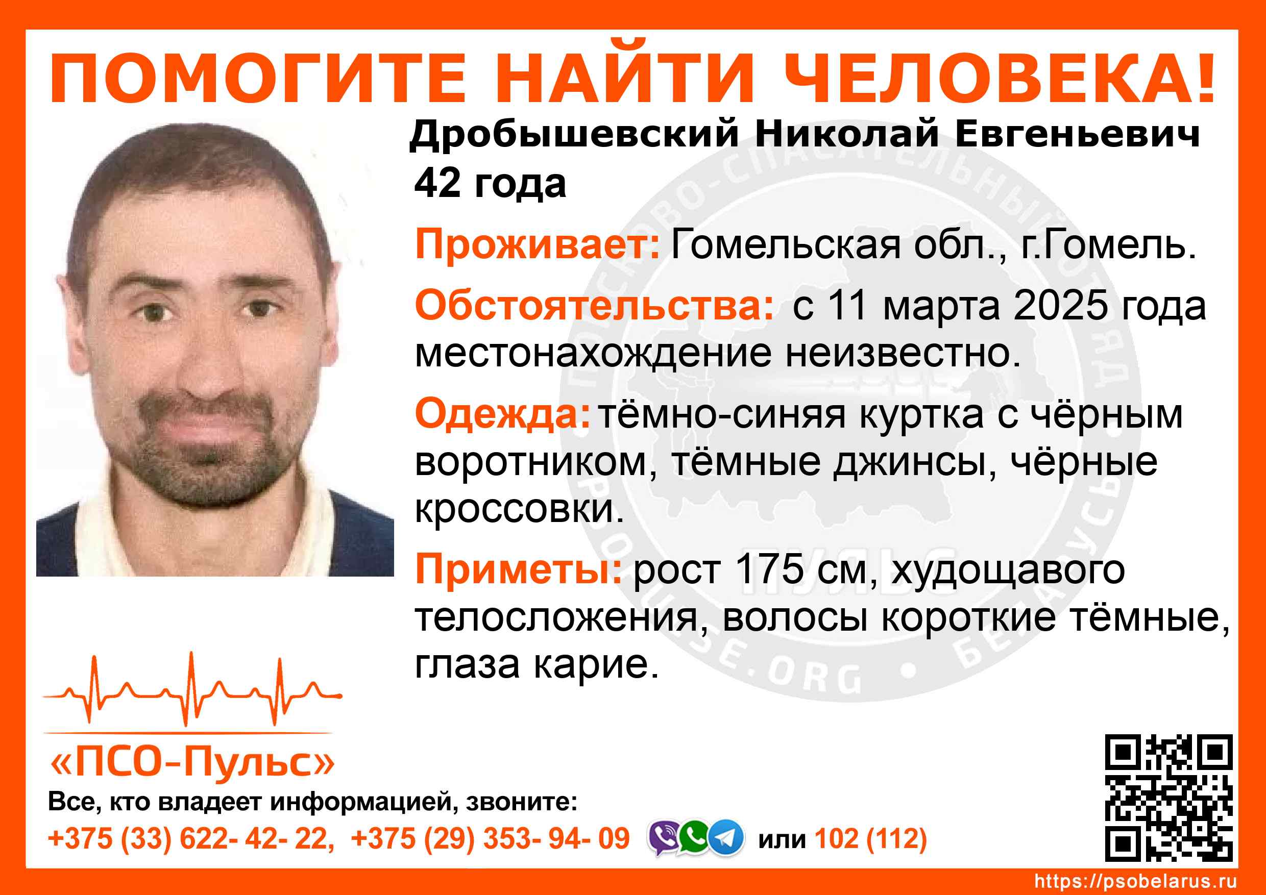 Всех, кто владеет информацией, просим сообщить: ПСО "ПСО-Пульс" +375(33)622-4222 |