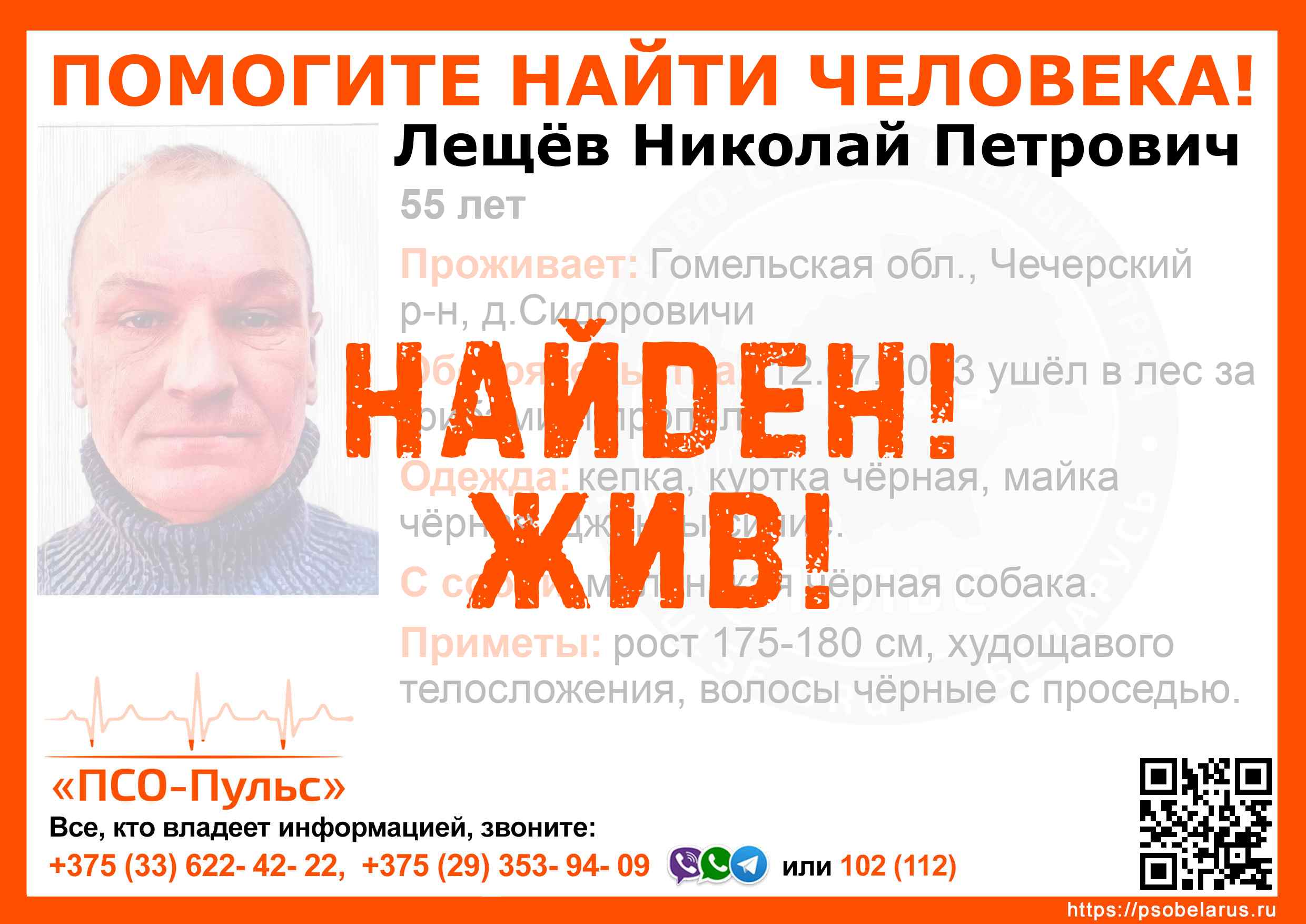 Всех, кто владеет информацией, просим сообщить: ПСО "ПСО-Пульс" +375(33)622-4222 |