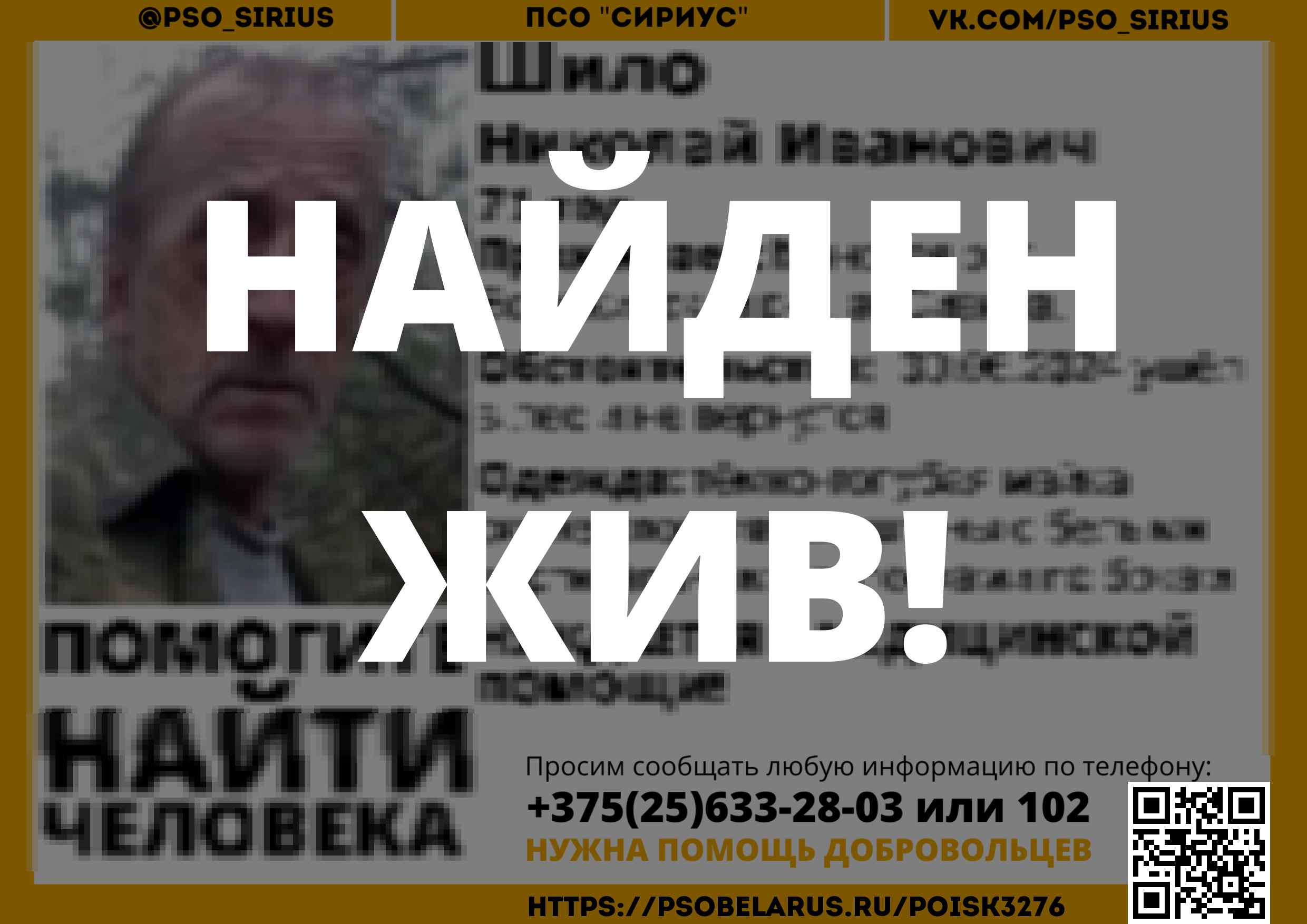 Всех, кто владеет информацией, просим сообщить: ПСО "Сириус" +375(25)633-28-03 |