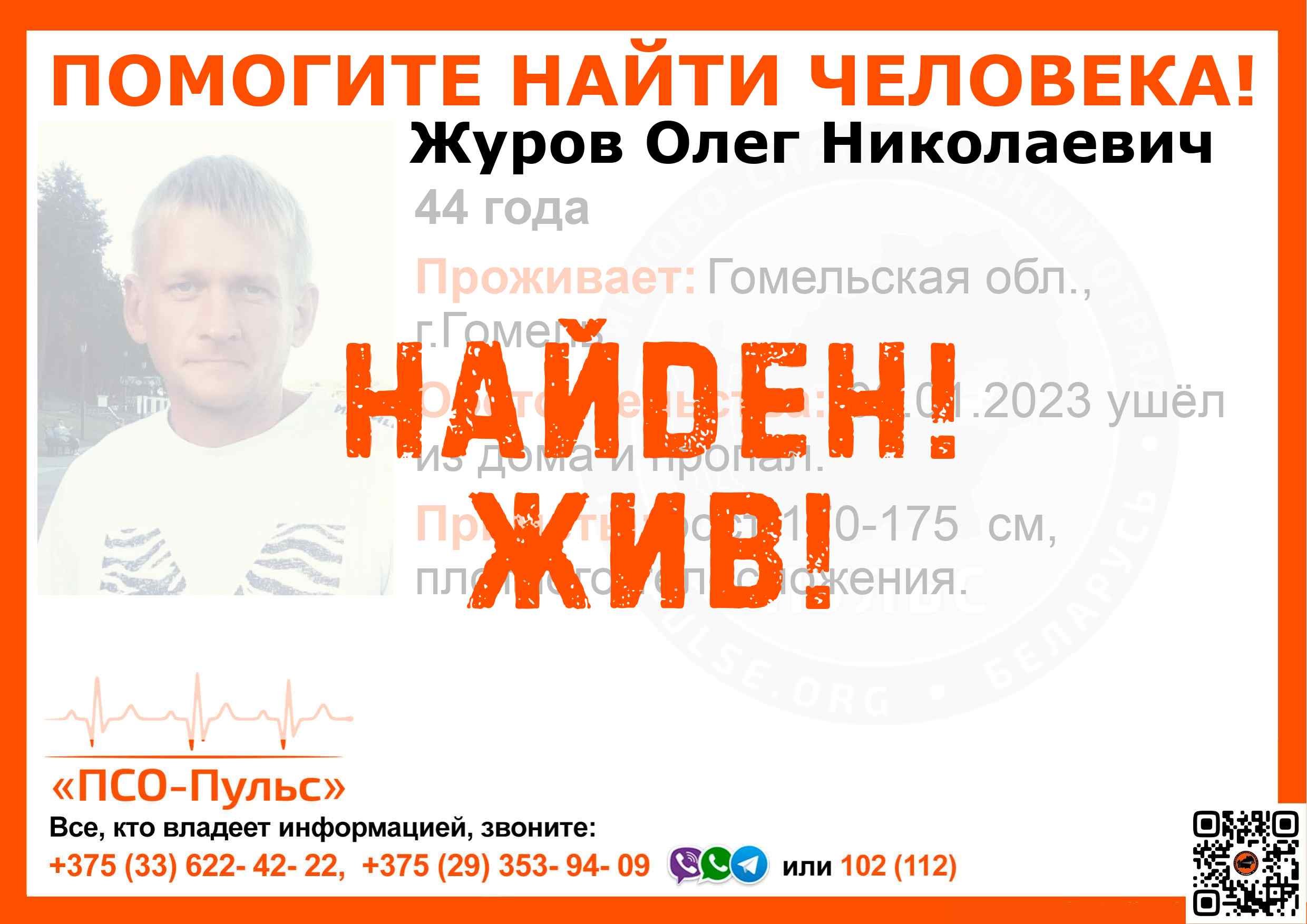 Всех, кто владеет информацией, просим сообщить: ПСО "ПСО-Пульс" +375(33)622-4222 |