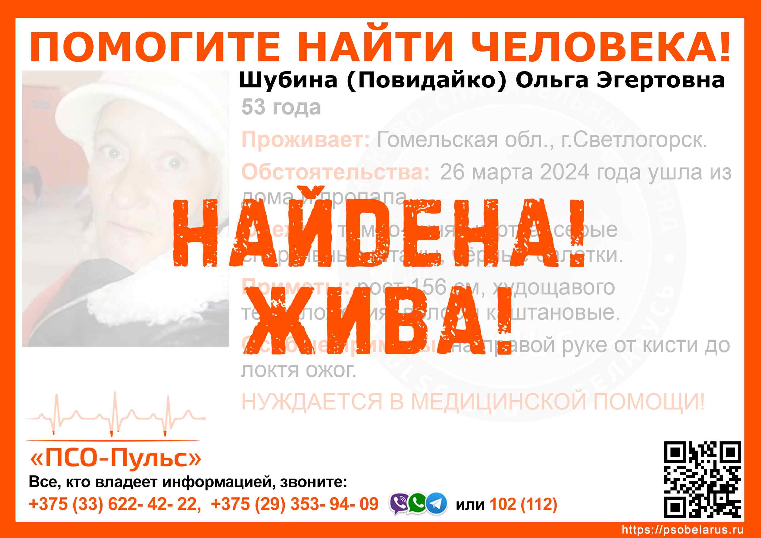 Скачать ориентировкуДля оперативного получения информации о пропавших людях и сборах на поиски можно подписаться на бота оповещения: Телеграм