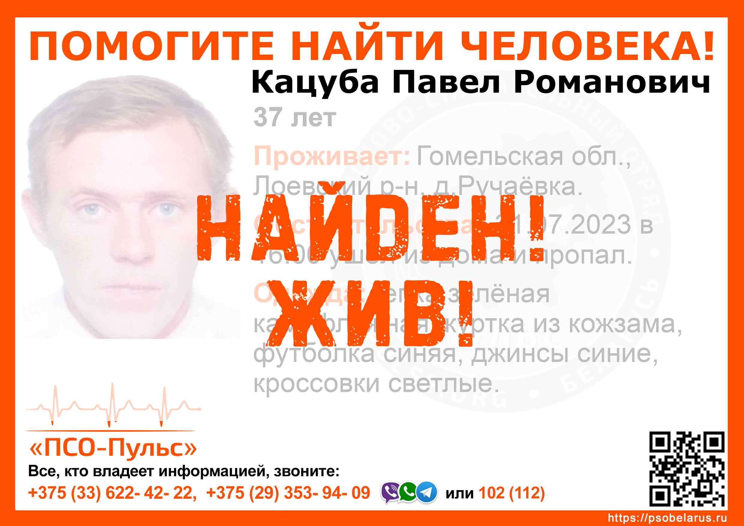 Всех, кто владеет информацией, просим сообщить: ПСО "ПСО-Пульс" +375(33)622-4222 |