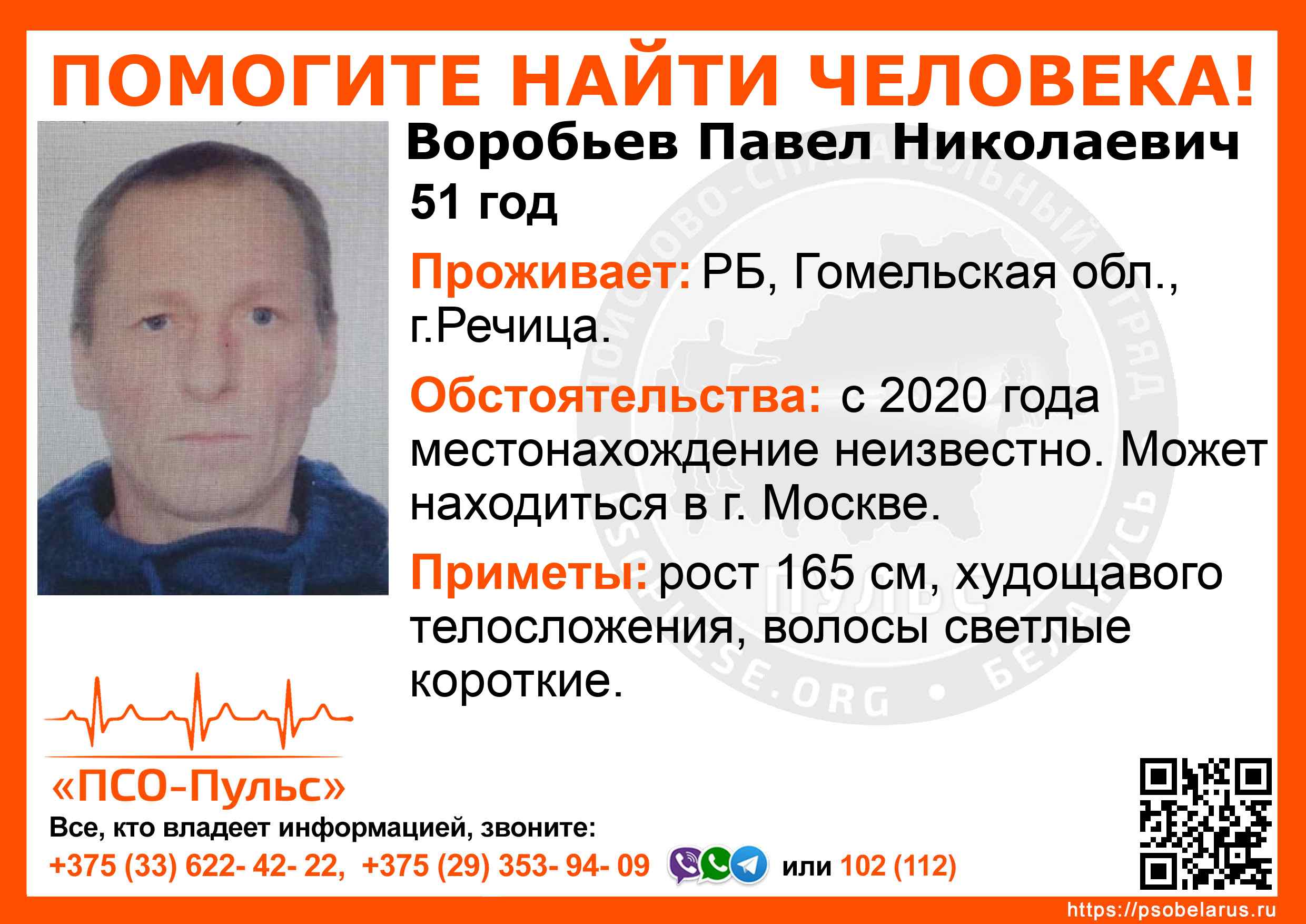 Всех, кто владеет информацией, просим сообщить: ПСО "ПСО-Пульс" +375(33)622-4222 |