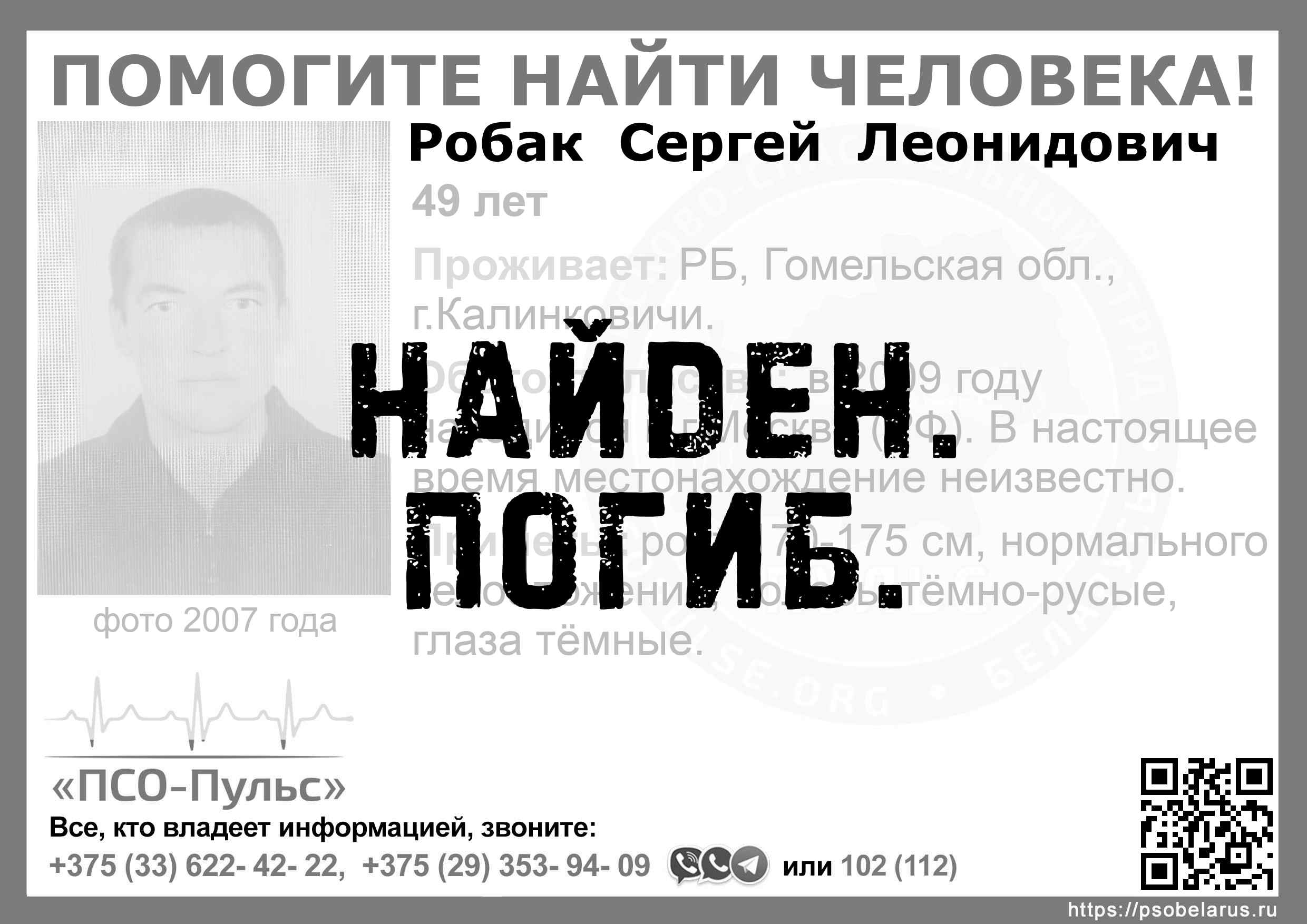 Всех, кто владеет информацией, просим сообщить: ПСО "ПСО-Пульс" +375(33)622-4222 |