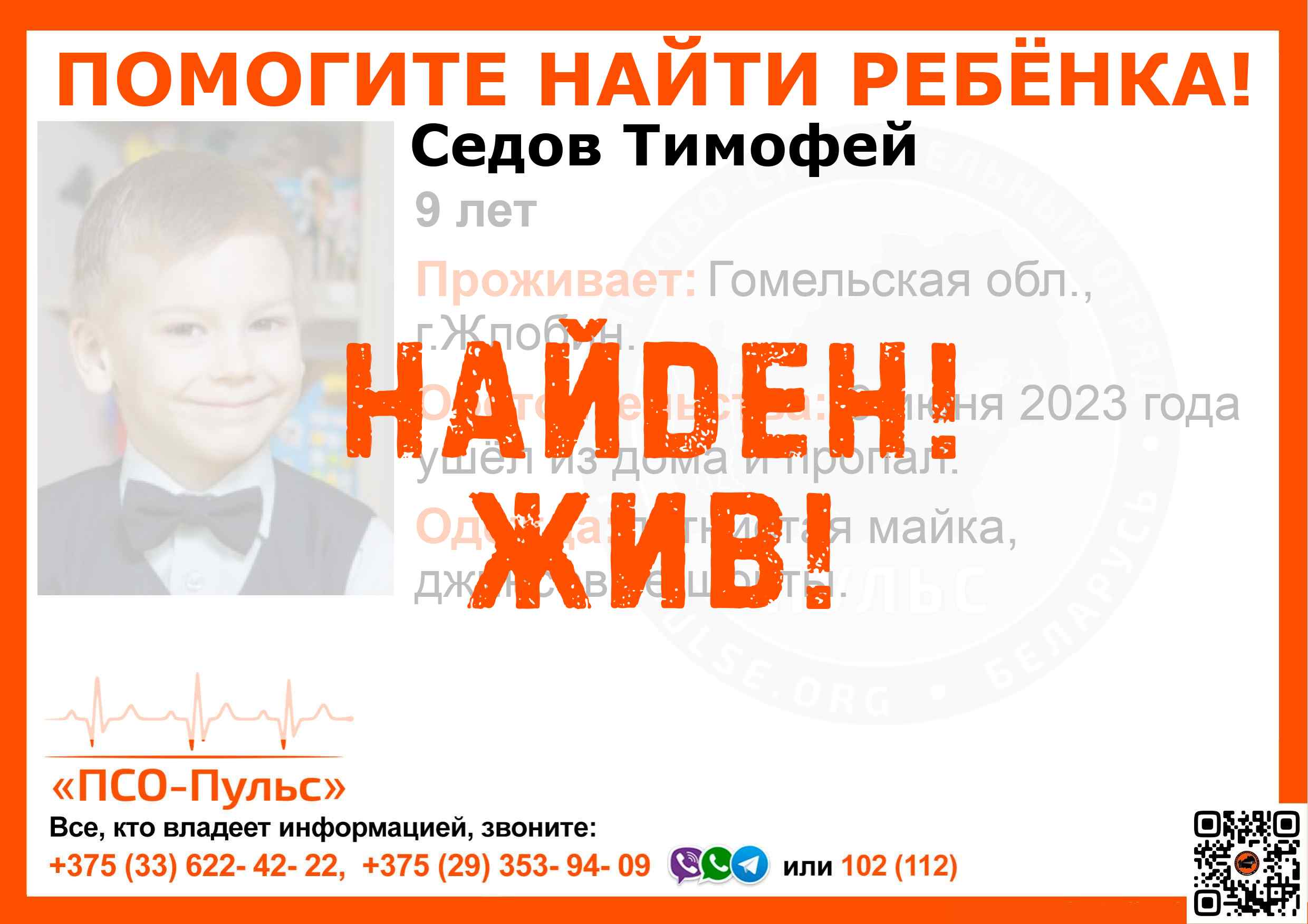 Всех, кто владеет информацией, просим сообщить: ПСО "ПСО-Пульс" +375(33)622-4222 |