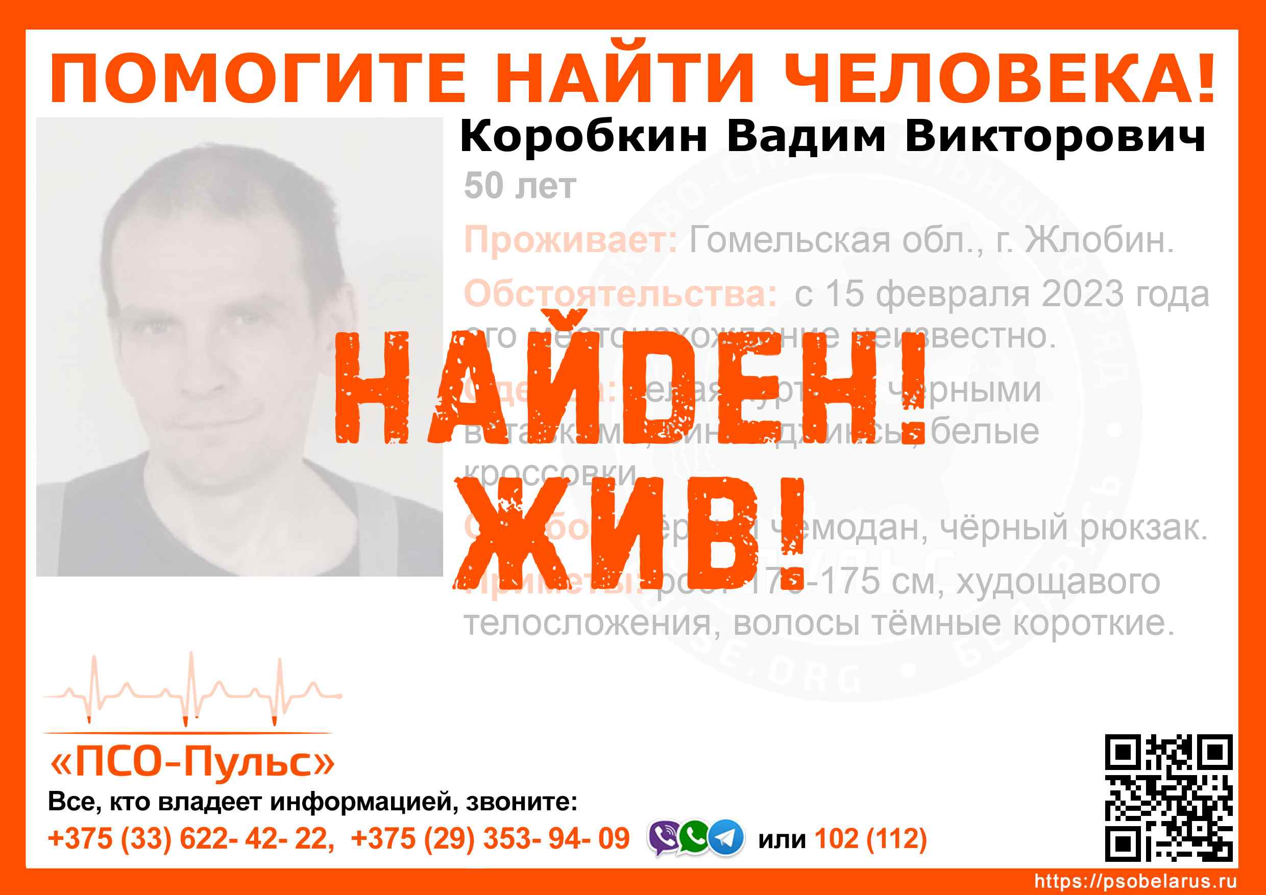 Всех, кто владеет информацией, просим сообщить: ПСО "ПСО-Пульс" +375(33)622-4222 |