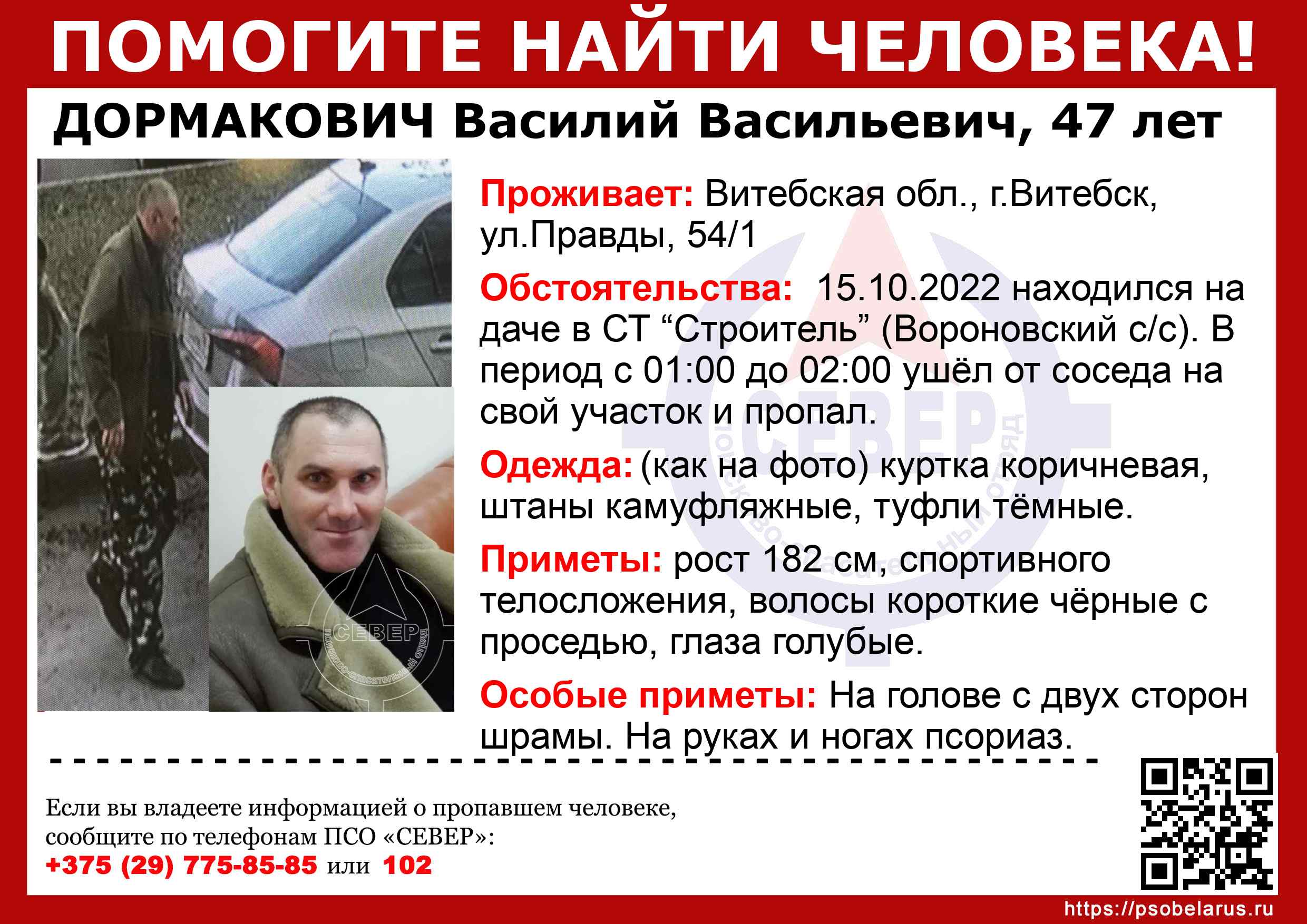 Всех, кто владеет информацией, просим сообщить: ПСО "СЕВЕР" +375(29)775-8585 |