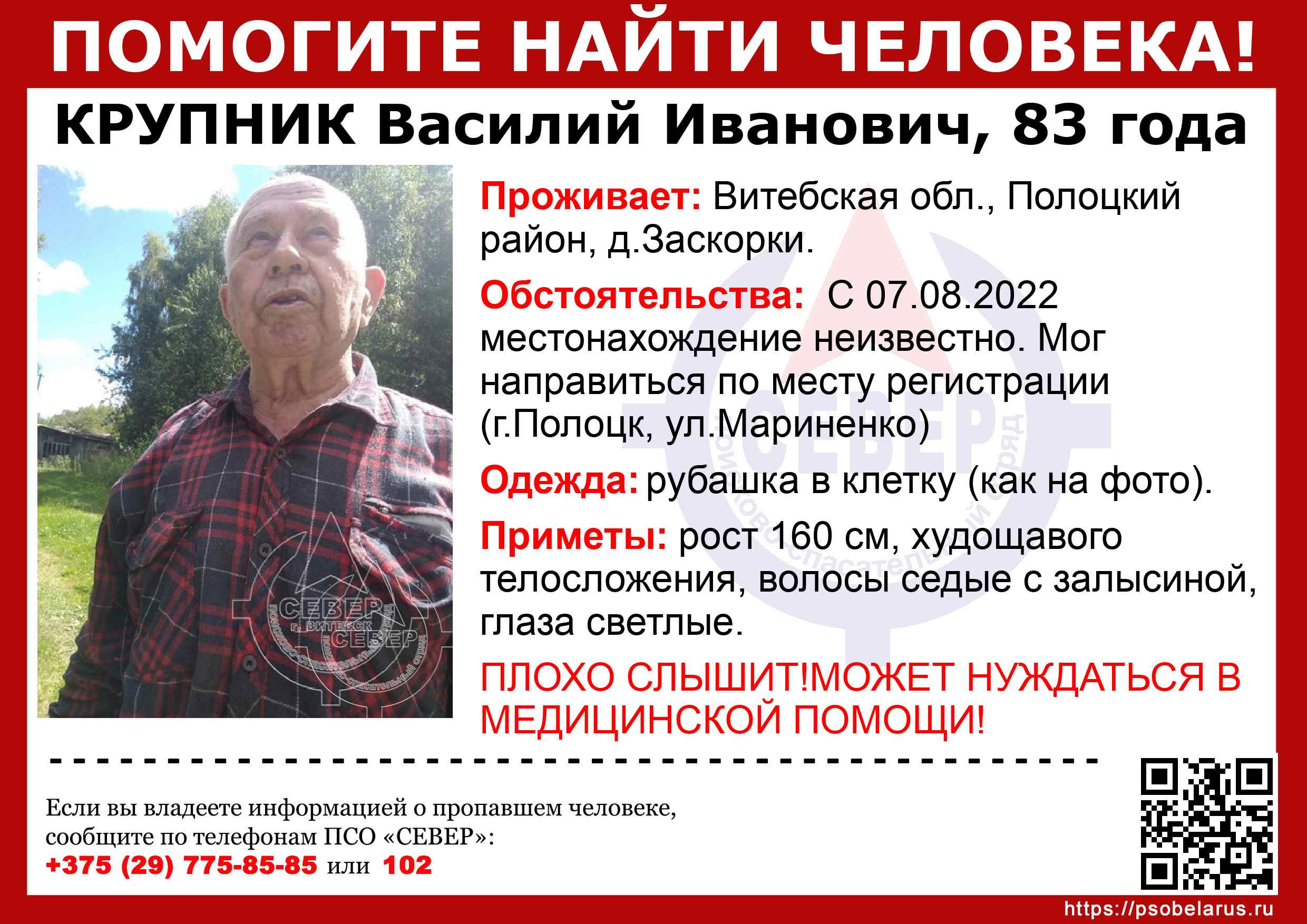 Скачать ориентировкуДля оперативного получения информации о пропавших людях и сборах на поиски можно подписаться на бота оповещения: Телеграм