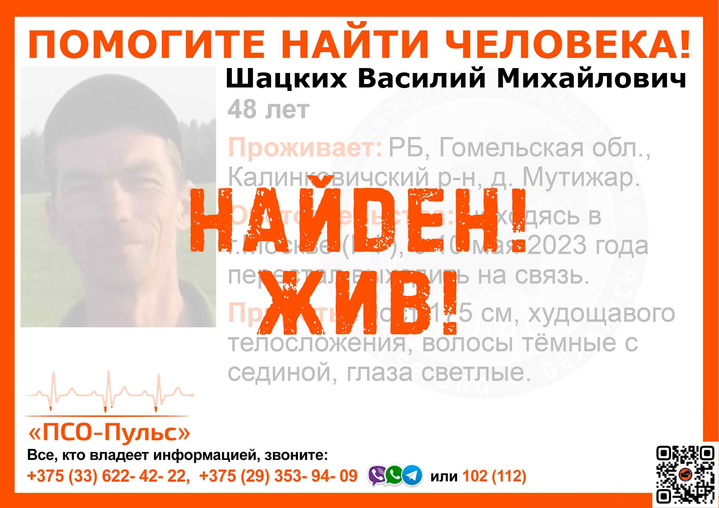 Всех, кто владеет информацией, просим сообщить: ПСО "ПСО-Пульс" +375(33)622-4222 |