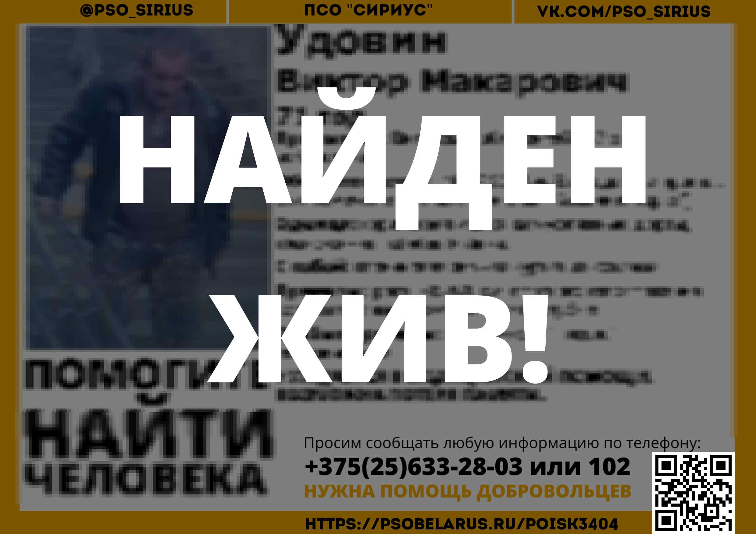 Всех, кто владеет информацией, просим сообщить: ПСО "Сириус" +375(25)633-28-03 |