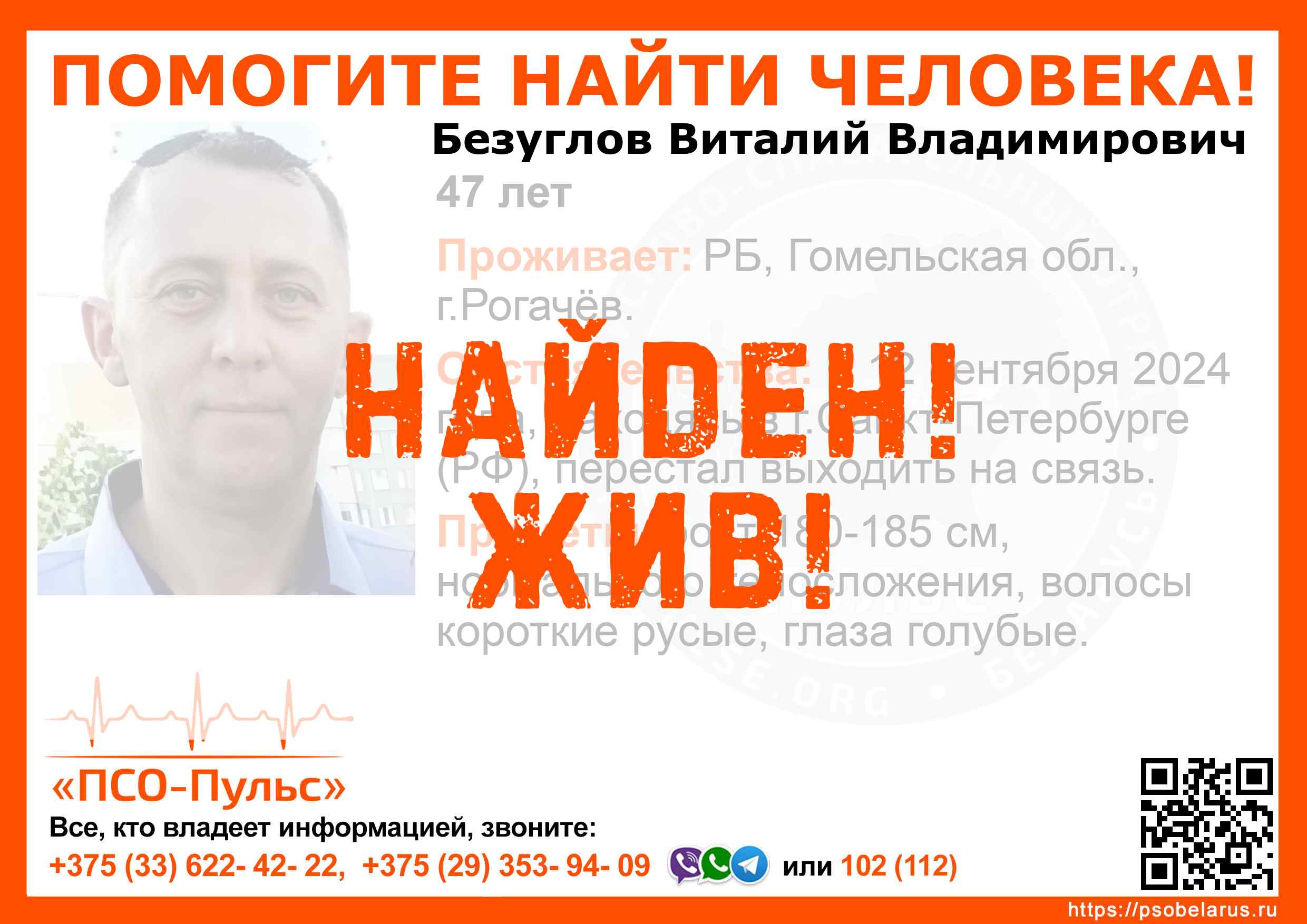 Всех, кто владеет информацией, просим сообщить: ПСО "ПСО-Пульс" +375(33)622-4222 |