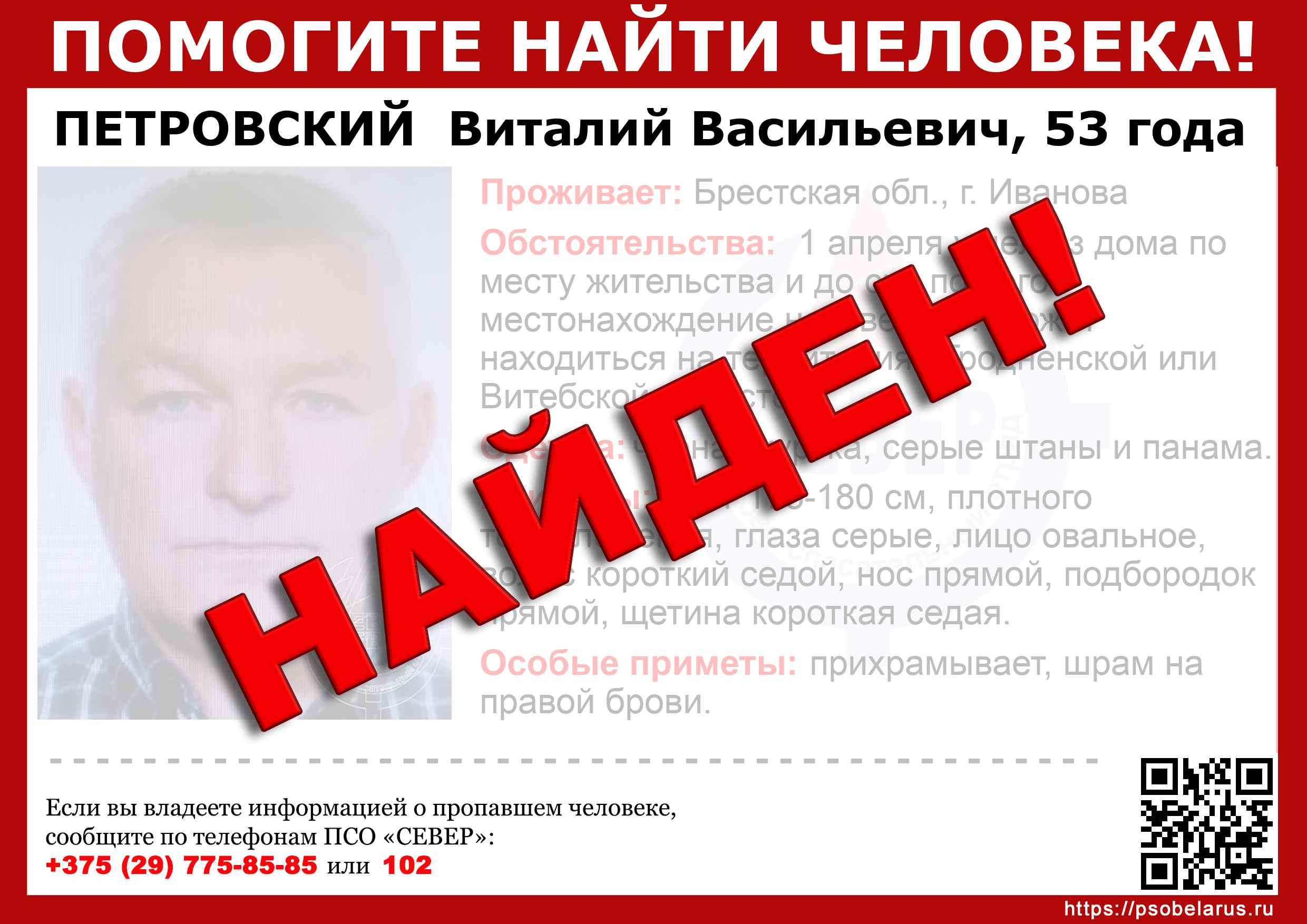 Всех, кто владеет информацией, просим сообщить: ПСО "СЕВЕР" +375(29)775-8585 |