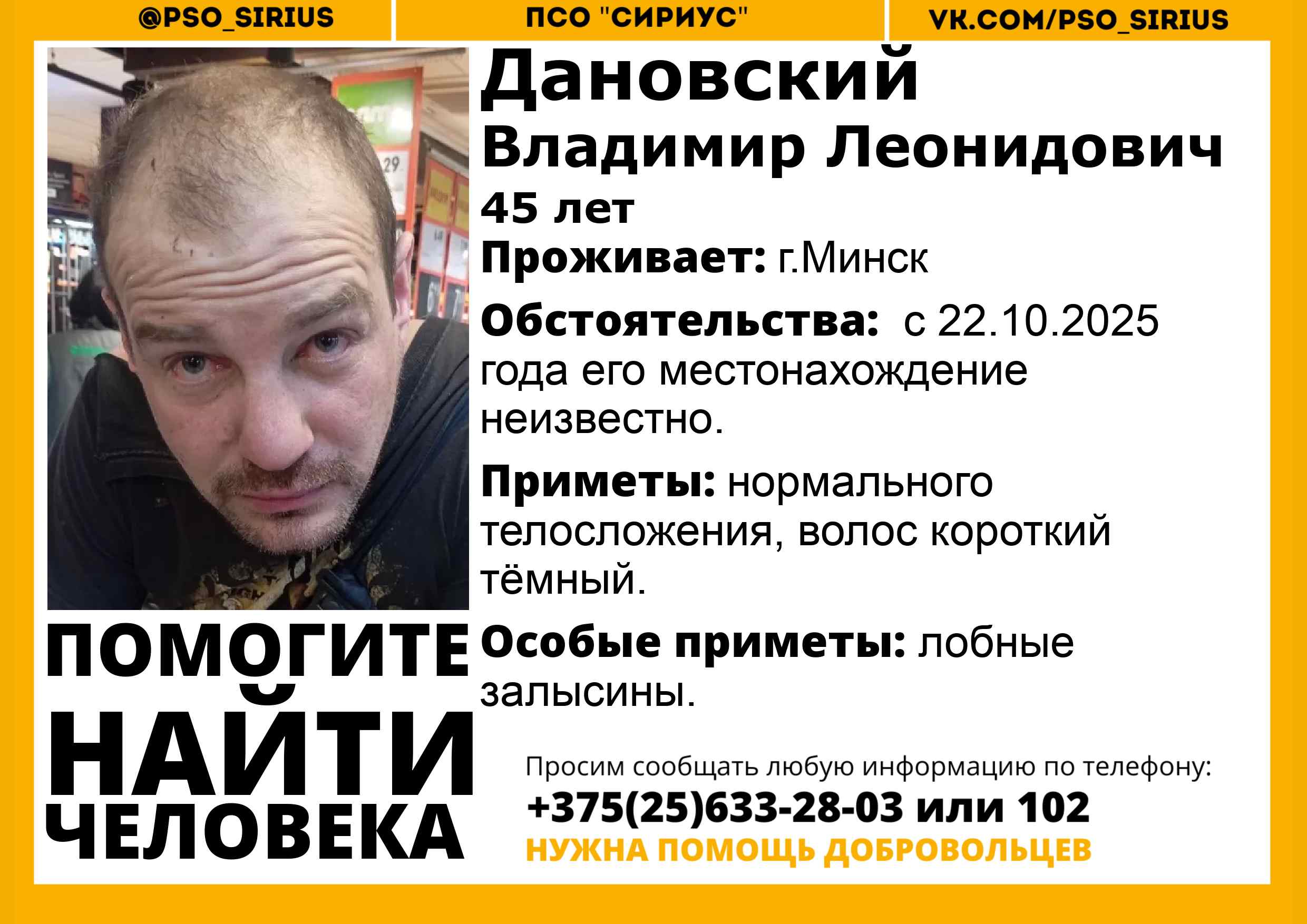 Всех, кто владеет информацией, просим сообщить: ПСО "Сириус" +375(25)633-28-03 |