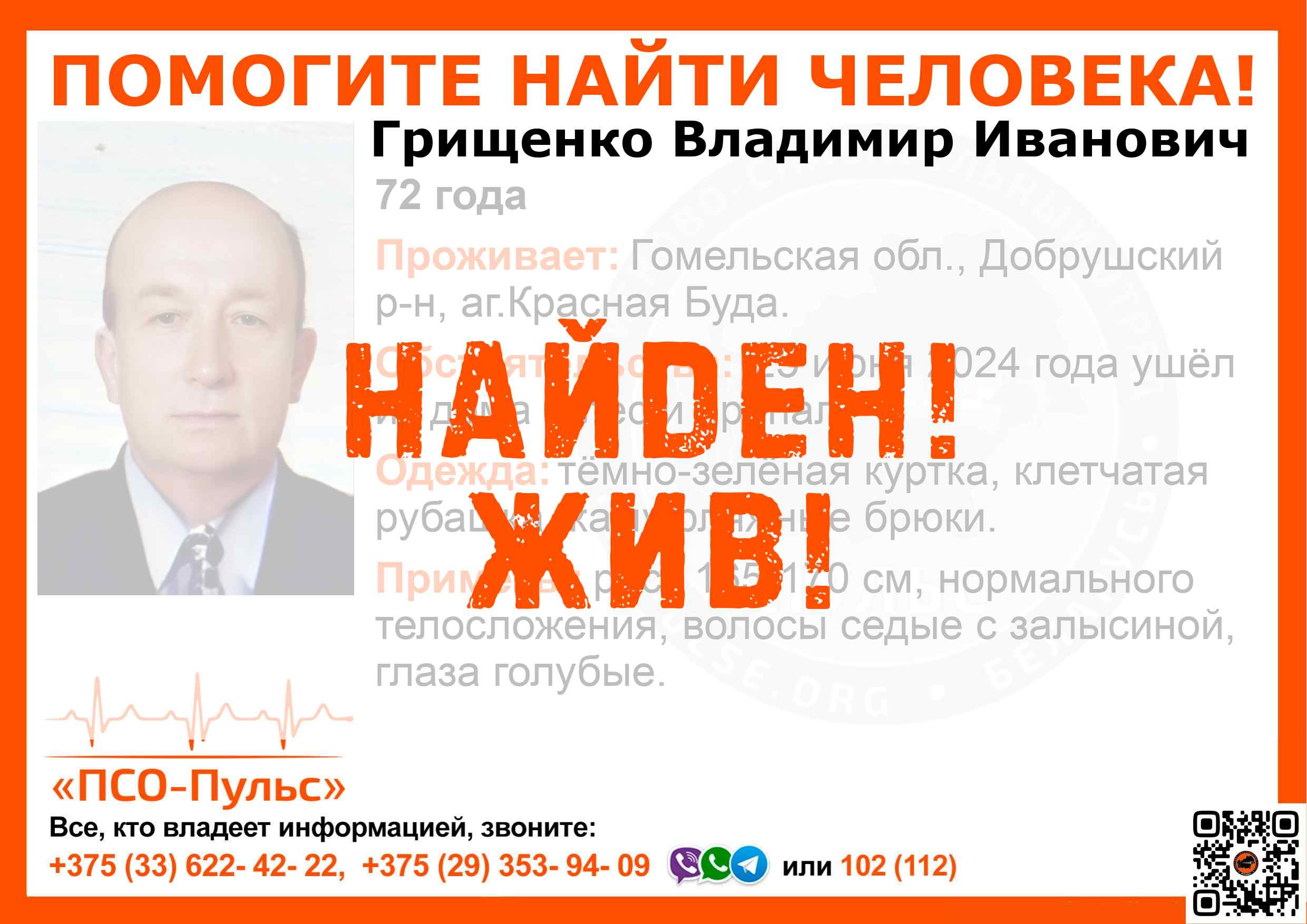 Всех, кто владеет информацией, просим сообщить: ПСО "ПСО-Пульс" +375(33)622-4222 |
