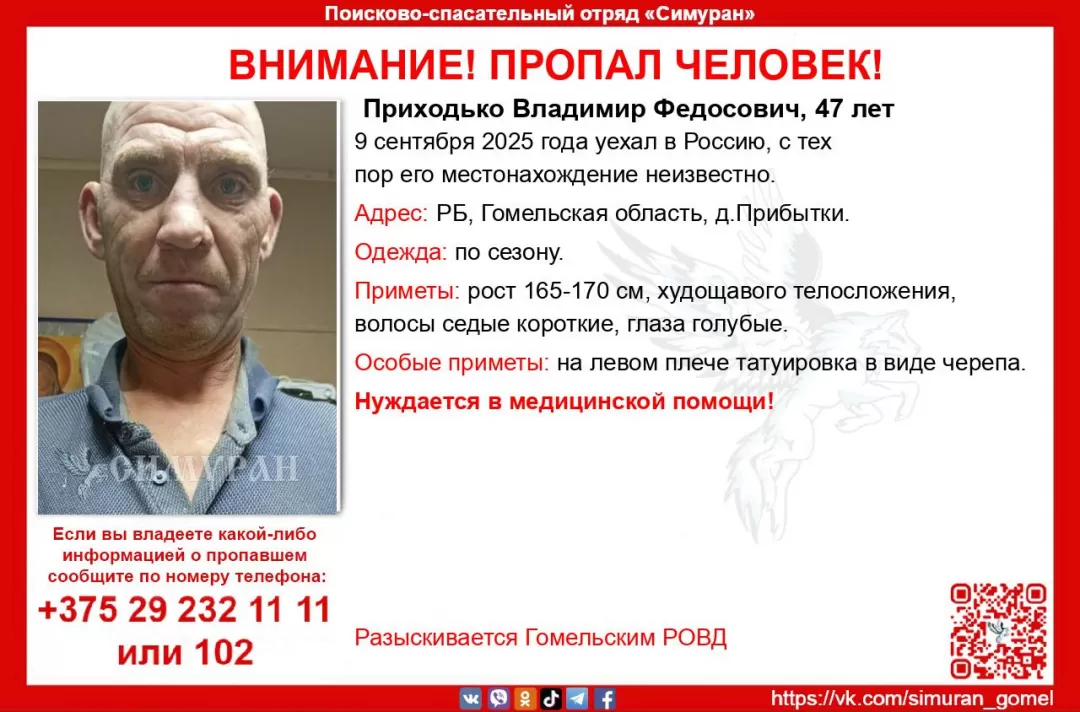 Всех, кто владеет информацией, просим сообщить: ПСО "Симуран" +375(29)232-1111 |