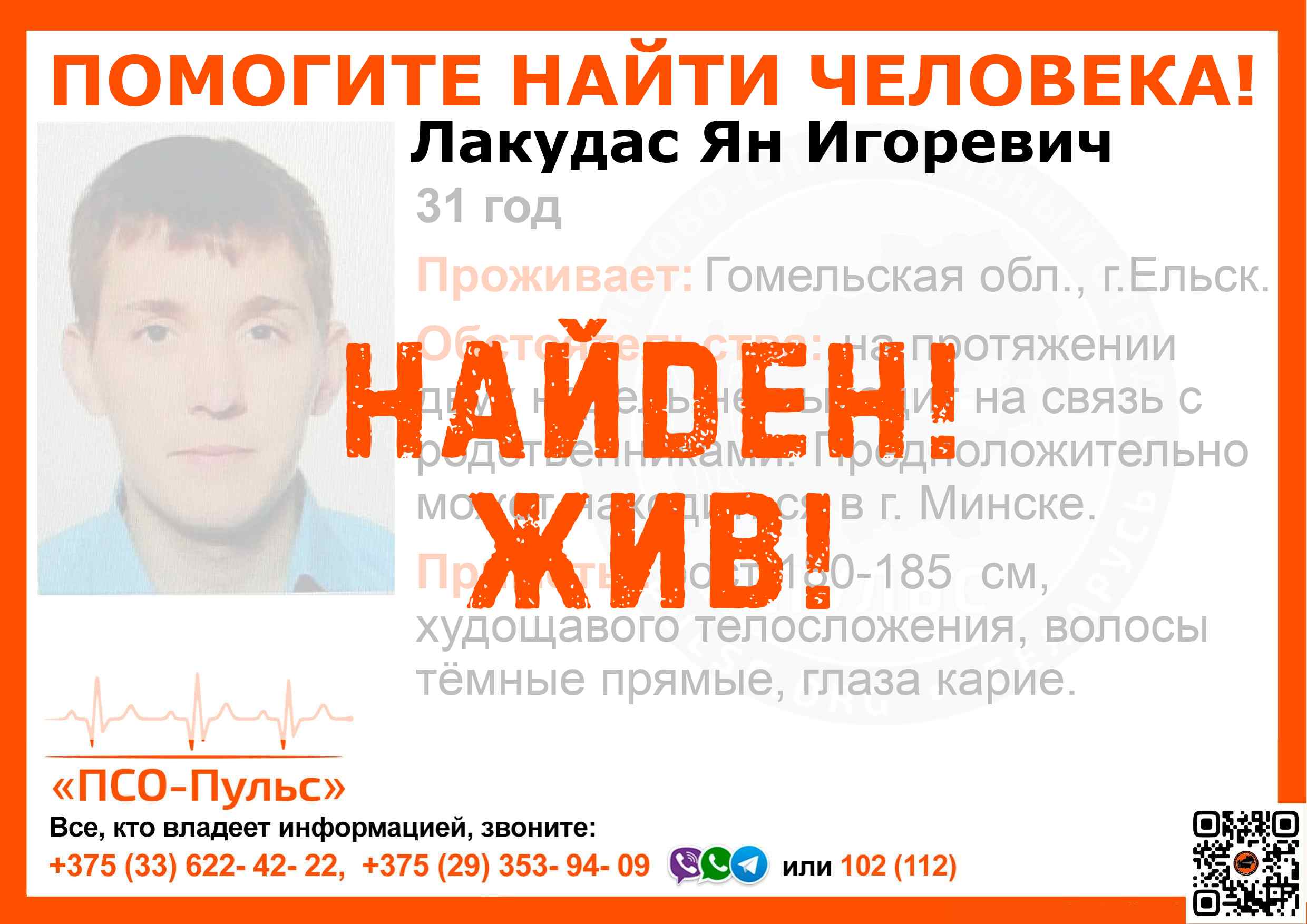 Всех, кто владеет информацией, просим сообщить: ПСО "ПСО-Пульс" +375(33)622-4222 |