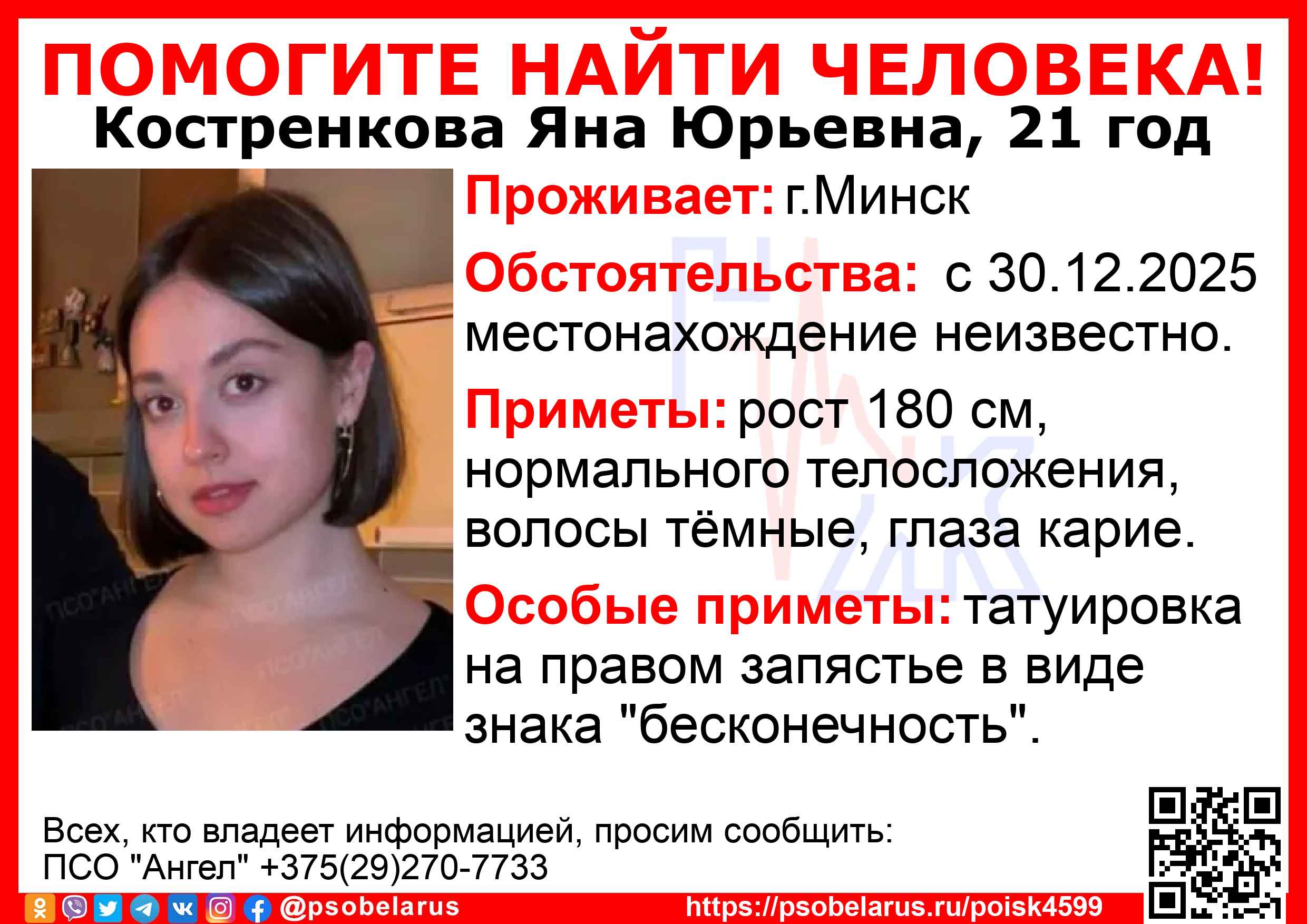 Всех, кто владеет информацией, просим сообщить: ПСО "Ангел" +375(29)270-7733 |