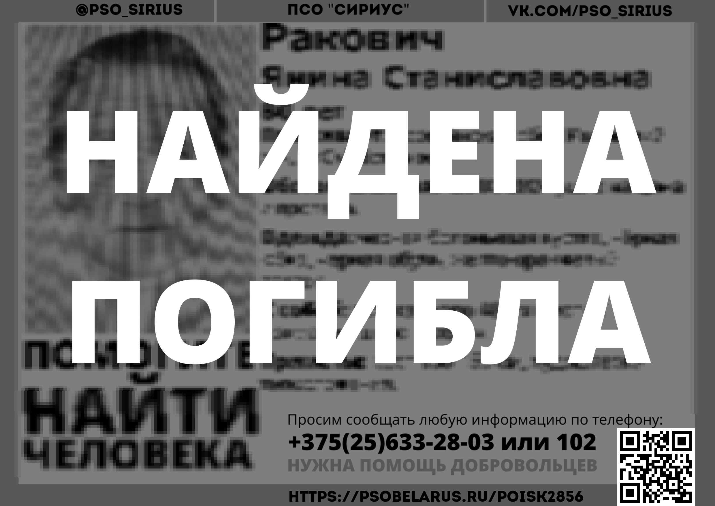 Всех, кто владеет информацией, просим сообщить: ПСО "Сириус" +375(25)633-28-03 |