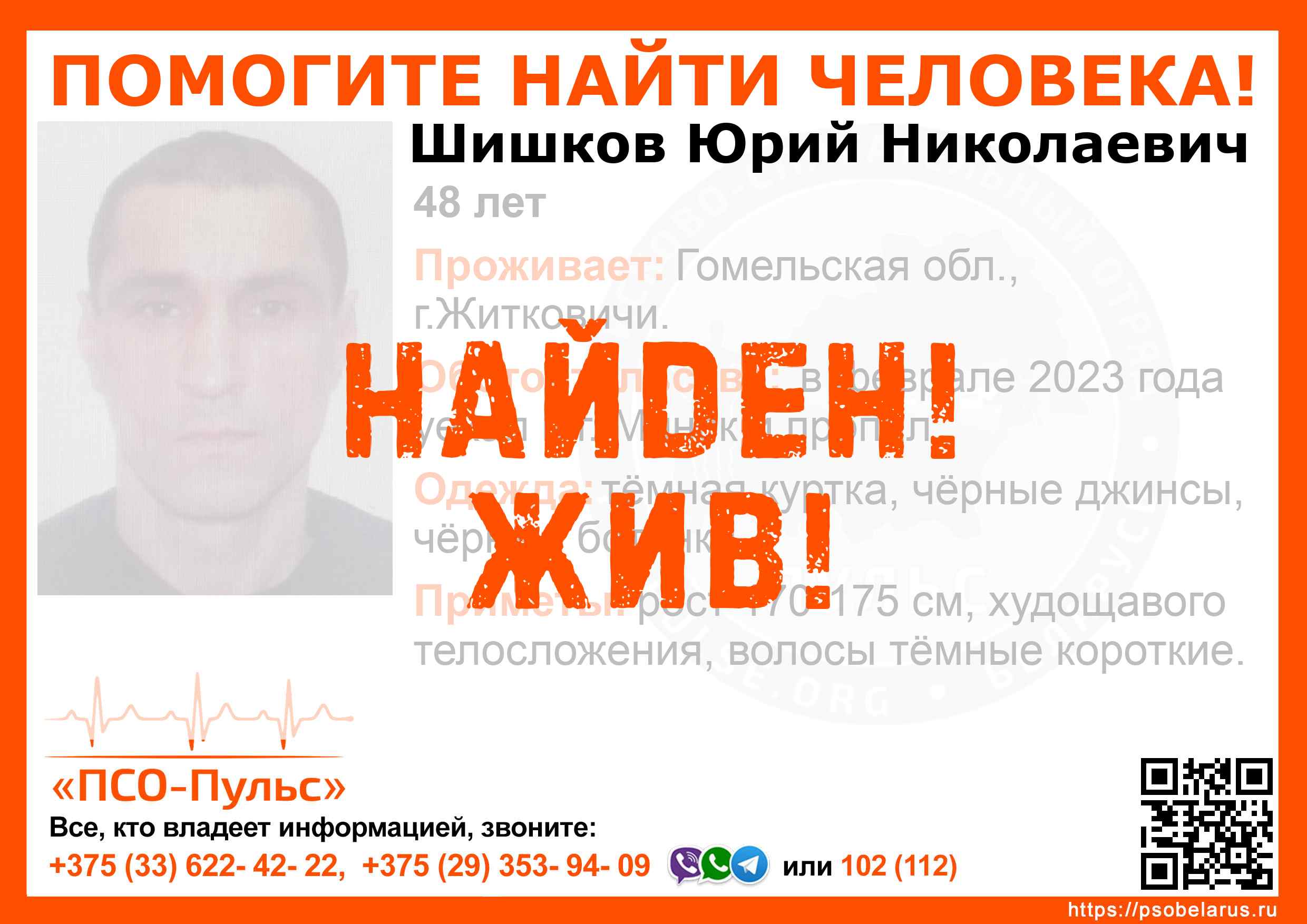 Всех, кто владеет информацией, просим сообщить: ПСО "ПСО-Пульс" +375(33)622-4222 |